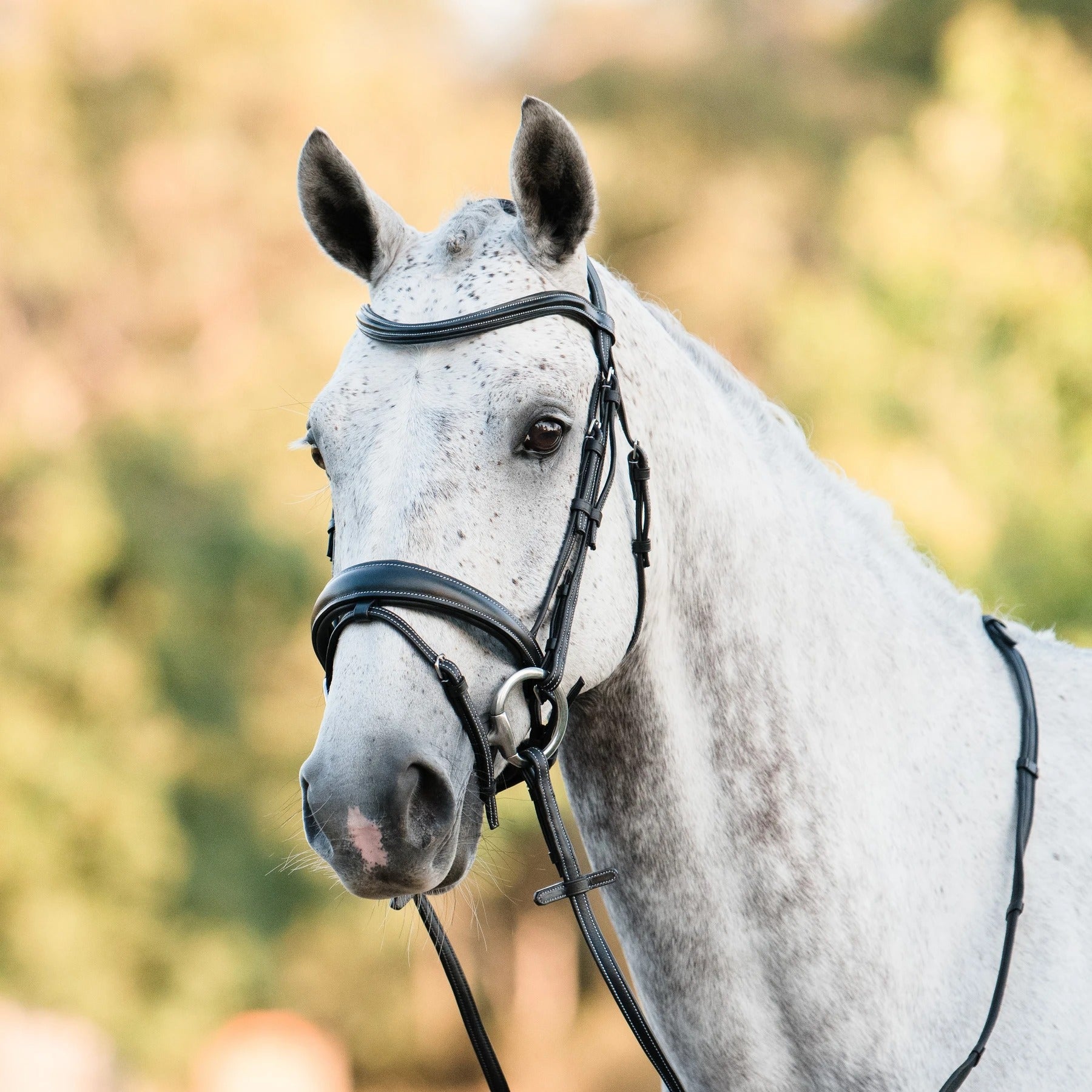The Ainsley is a new release bridle handcrafted from soft top quality leather. The bridle may be a simple style, but it's not without beautiful details. The headpiece is made entirely from super soft nappa leather* and the bridle features contrasting white stitching detail..