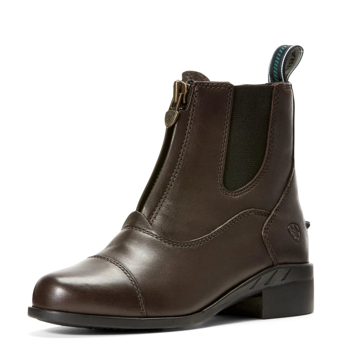Our Devon IV paddock boot is a showcase for outstanding comfort, stability and durability, presented in beautiful full-grain leather. The moisture-wicking lining also provides exceptional breathability. An antiqued brass zipper and elastic gore allow easy on/off, while removable Wiggle Room footbeds give young athletes the opportunity to keep their favorite new boots longer.