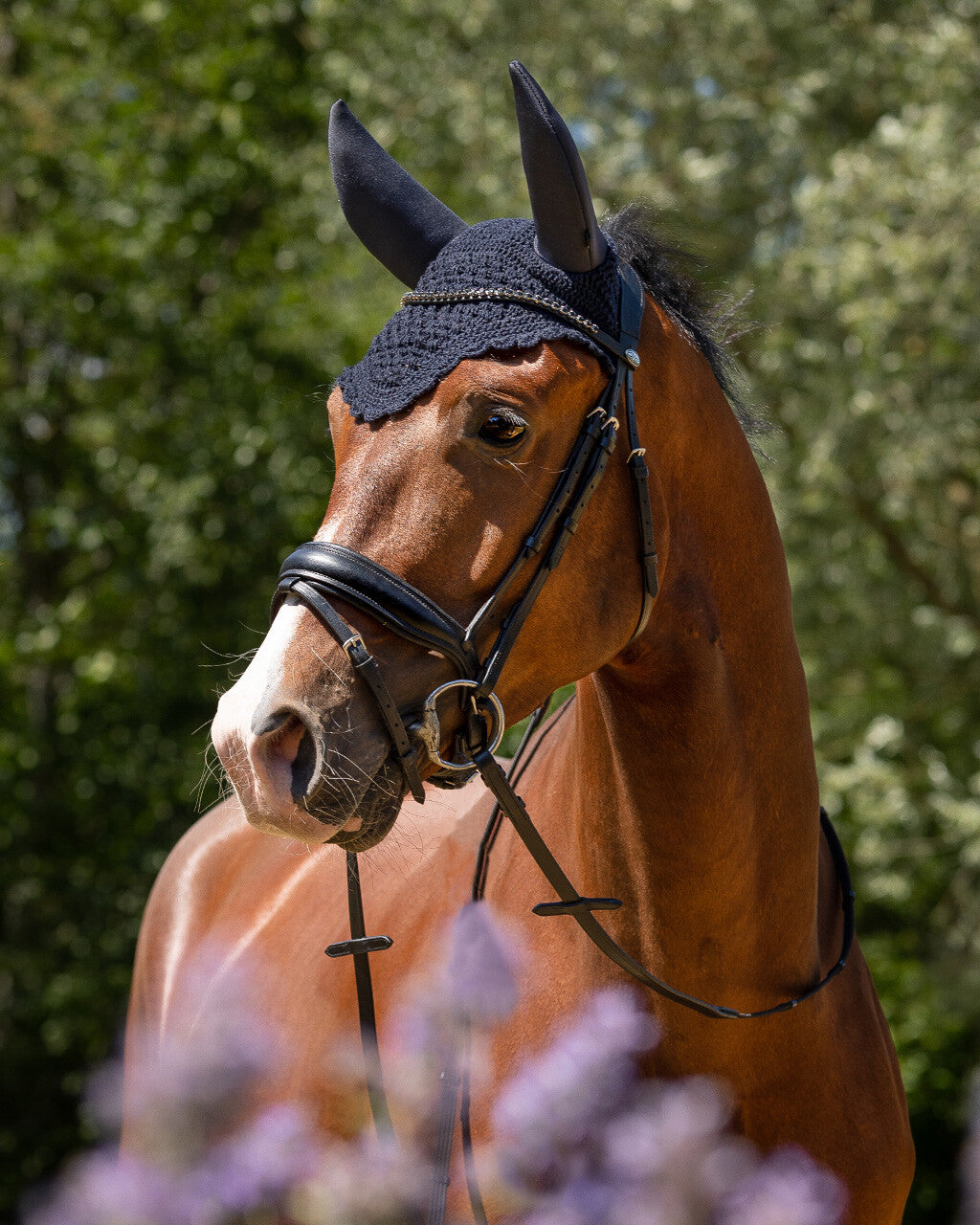 The chic Flore ear net protects your horse's ears due to the soundproof fabric. The ear net is crocheted and can be combined with the rest of the Flore collection.