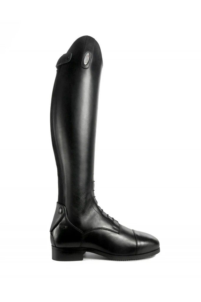 Capitoli Riding Boots are crafted from the finest quality, smooth soft leather. The laces and high cut outside of the boot make this an elegant choice. A subtle elasticated panel down the rear of the boot ensures a snug fit whilst still being comfortable to ride in and the reinforced leather toe cap offers extra protection. Features Brogini Prestige Pin, Branded Brogini Popper, Branded Sole, 2 part YKK zipper.