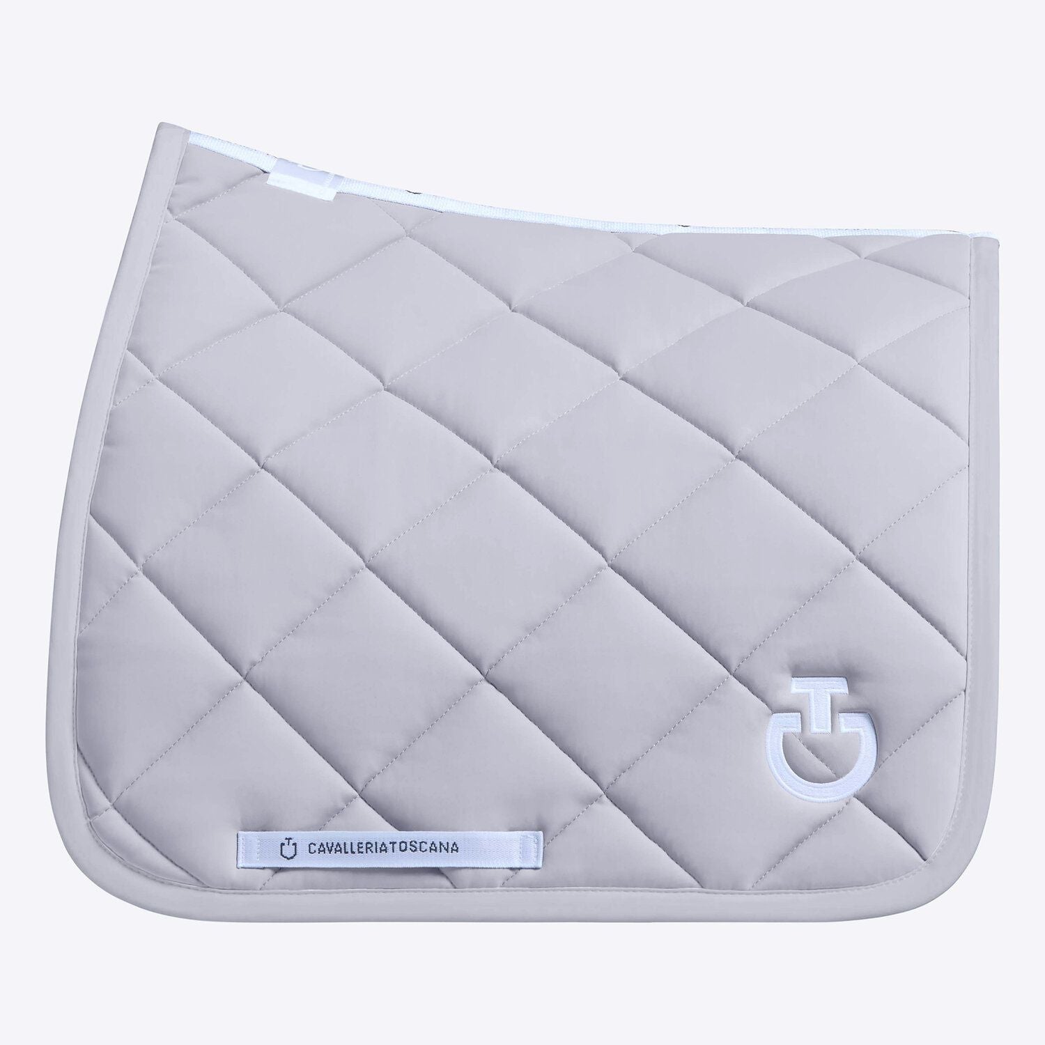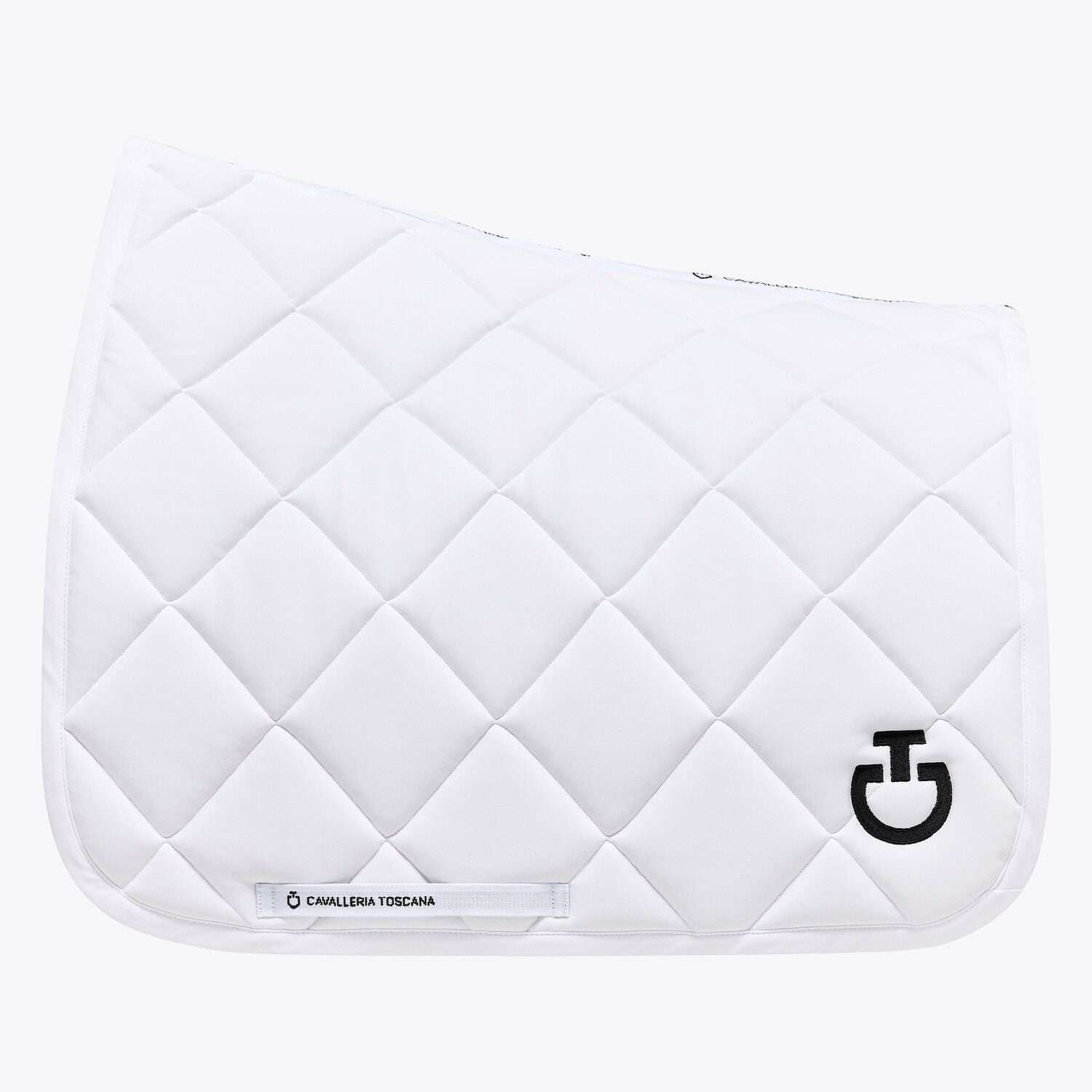 The Cavalleria Toscana dressage saddle pad is designed to offer comfort and protection during equestrian activities. Made with high-quality materials, this saddle pad features diamond quilting that ensures excellent pressure distribution and a perfect fit. The 3D honeycomb cotton structure adheres to the horse's back while maintaining high breathability. Finished with embroidered Cavalleria Toscana logo, it adds a touch of elegance and style. The breathable fabric ensures proper ventilation, keeping the horse dry and comfortable. Easy to maintain, the saddle pad is machine washable and dries quickly. Ideal for everyday use and competitions, the Cavalleria Toscana dressage saddle pad combines functionality and style, making it an essential accessory for those who want the best for their horse.