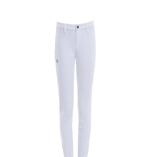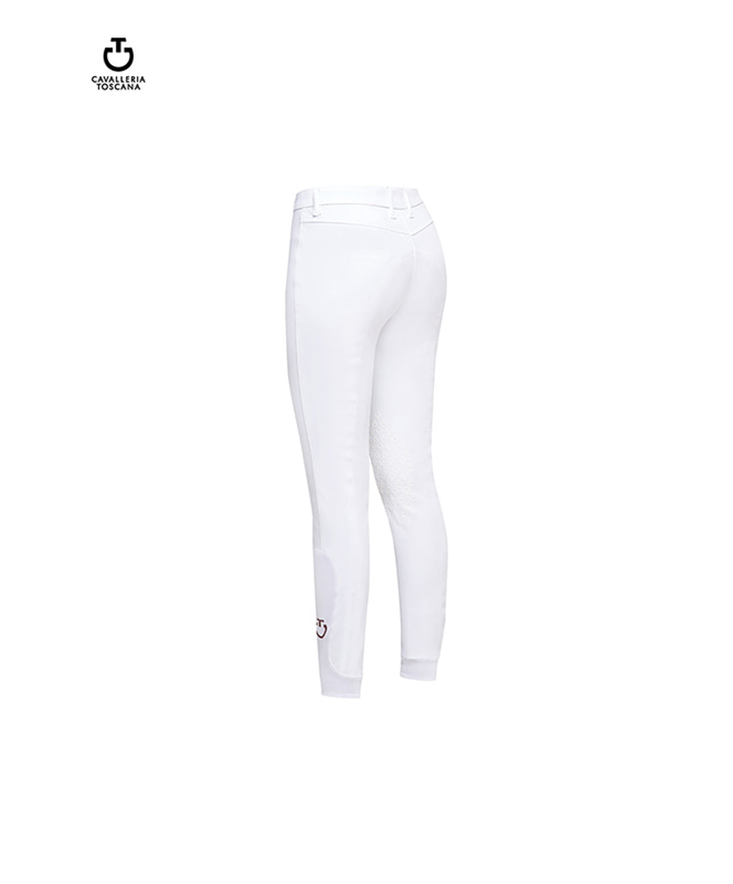 Give your young rider the best with Cavalleria Toscana's Girl's Color Grip Breeches in White. These breeches feature a stylized Horse and Helmet knee grip pattern, combining style with functionality. Crafted from technical 4-way stretch jersey, they offer maximum comfort and breathability, ensuring an easy ride.