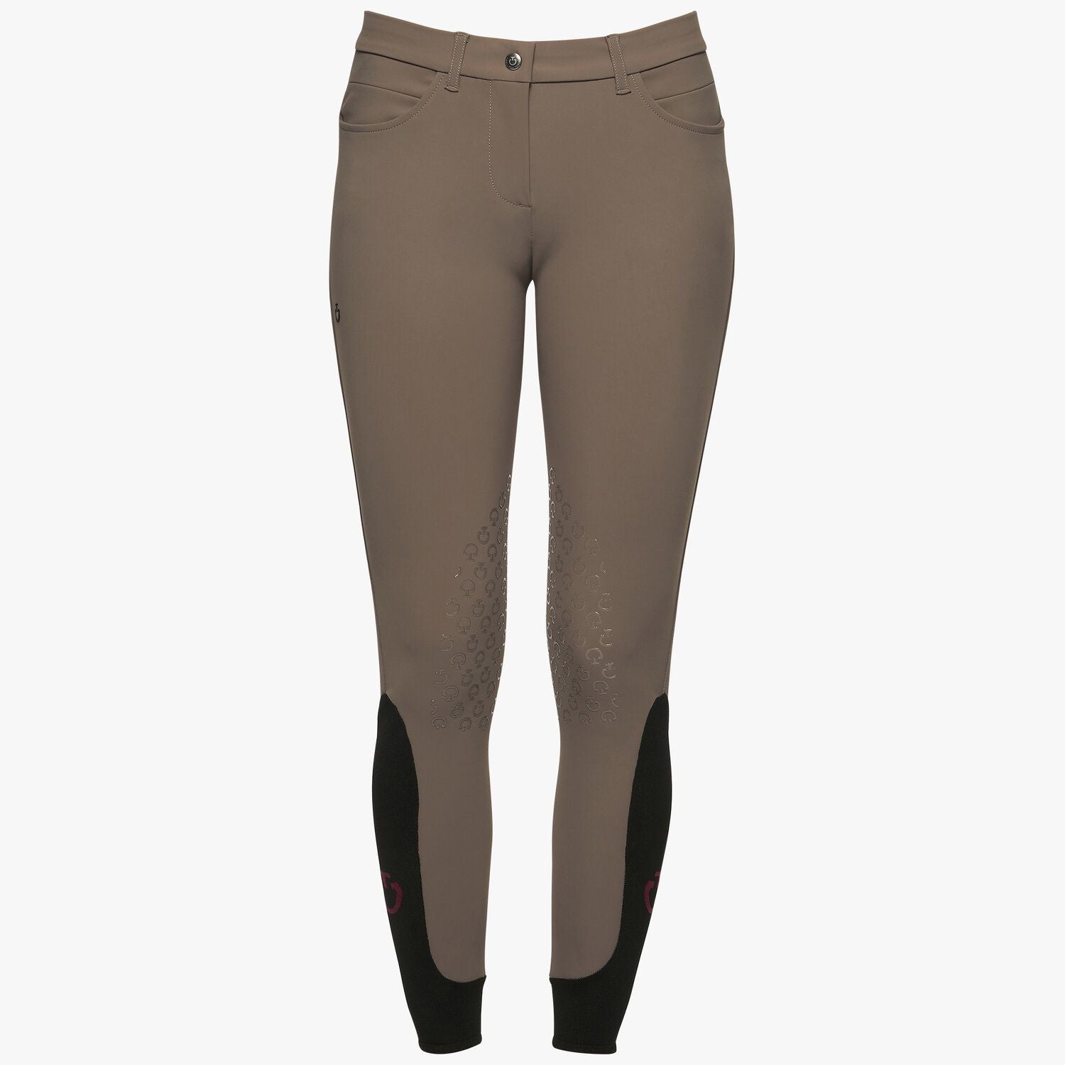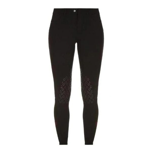 Crafted from breathable and comfortable technical jersey, these transparent regular rise knee grip breeches are engineered for peak performance. The bi-stretch fabric ensures a snug yet flexible fit, allowing you to move with ease in the saddle. With easy-care, fast-drying, and anti-UV properties, these breeches are tailored for riders who demand the best.