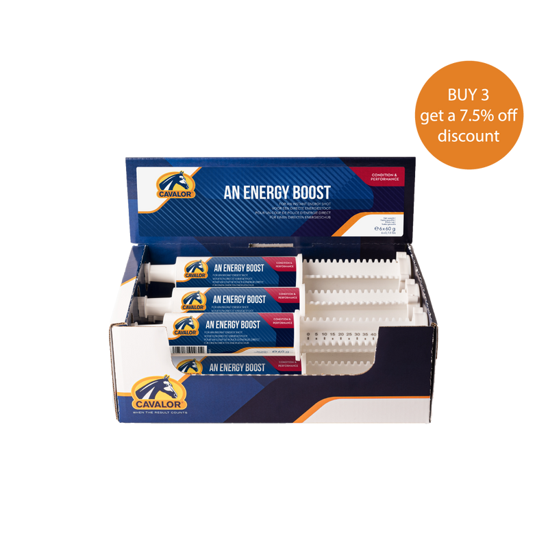Cavalor An Energy Boost gives your horse the extra energy it needs for intense physical exertion. It contains easily digestible carbohydrates to raise blood sugar levels quickly.