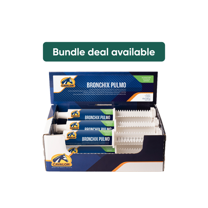 Cavalor® Bronchix Pulmo opens up the airways and supports pulmonary elasticity and resilience during high-intensity training and competition...