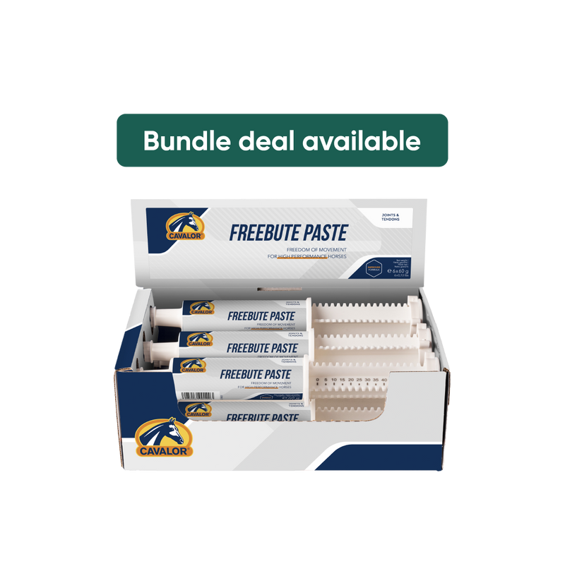 Cavalor FreeBute is available in 2 forms. Powder, which is ideal for long term use or a paste, which is more appropriate for occasional use.