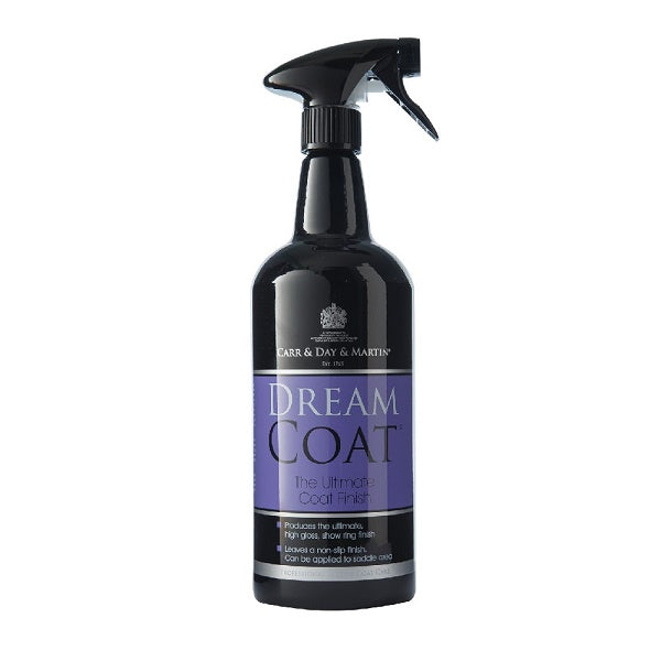 Outshine the competition with Dreamcoat, the ultimate high gloss finish. The unique non-slip formula highlights muscle definition and can be used on the saddle patch, leaving no grease or residue. Spray Dreamcoat onto manes and tails prior to plaiting for a high shine finish.