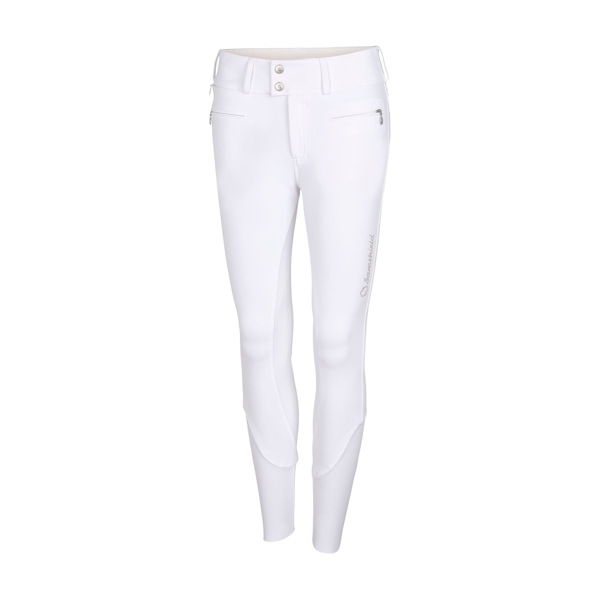 The Clara has a pocket phone and is decorated with Swarovski® crystals on the back pockets and the Samshield crest on the thigh, for a resolutely feminine style.