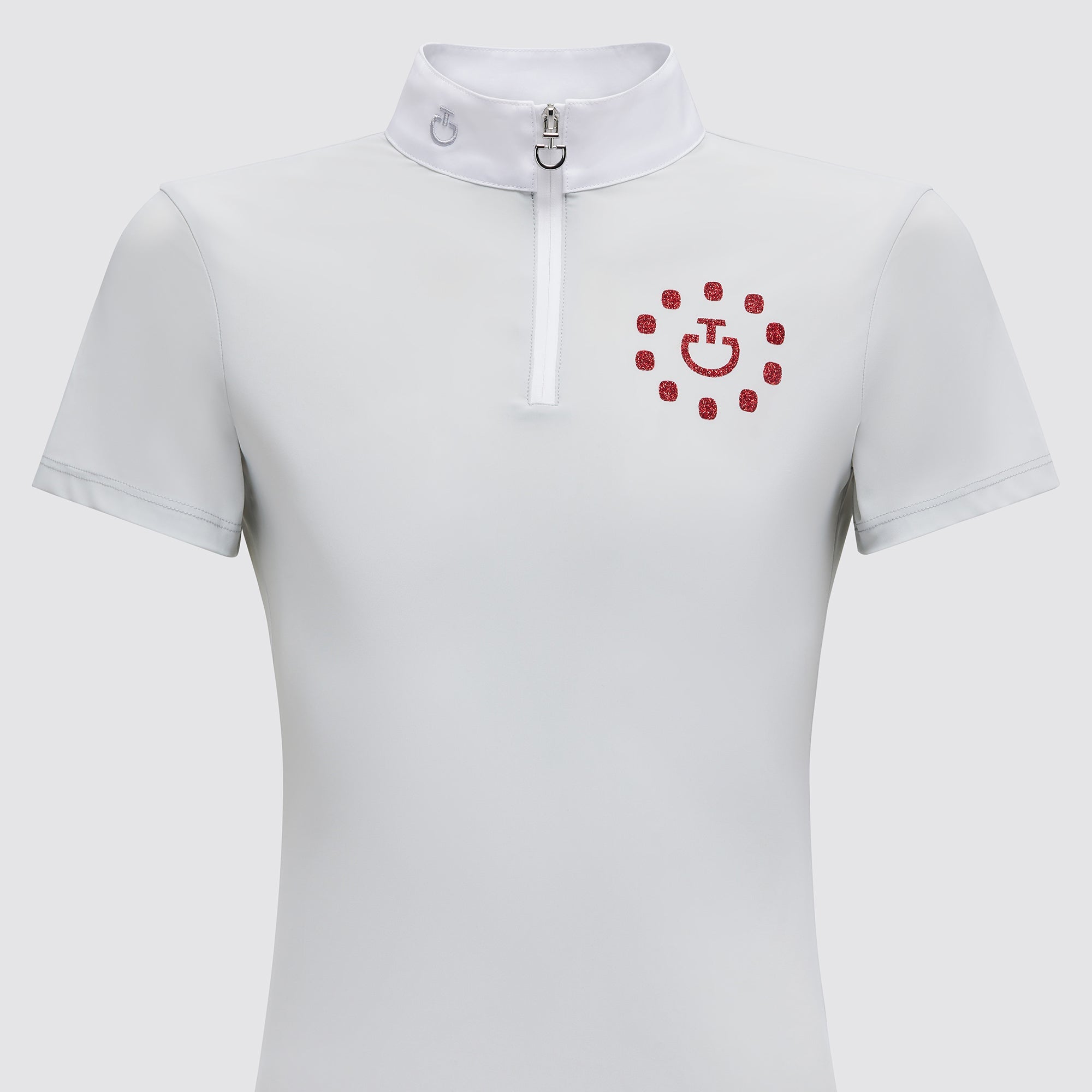 Immerse yourself in elegance with the sophisticated details of our CT Glitter Print Polo. The white poplin collar adds a touch of refinement, creating a polished look suitable for any riding occasion. The coated zipper not only enhances the overall aesthetic but also ensures a flawless fit. Step into the arena with confidence, knowing you exude style and grace.