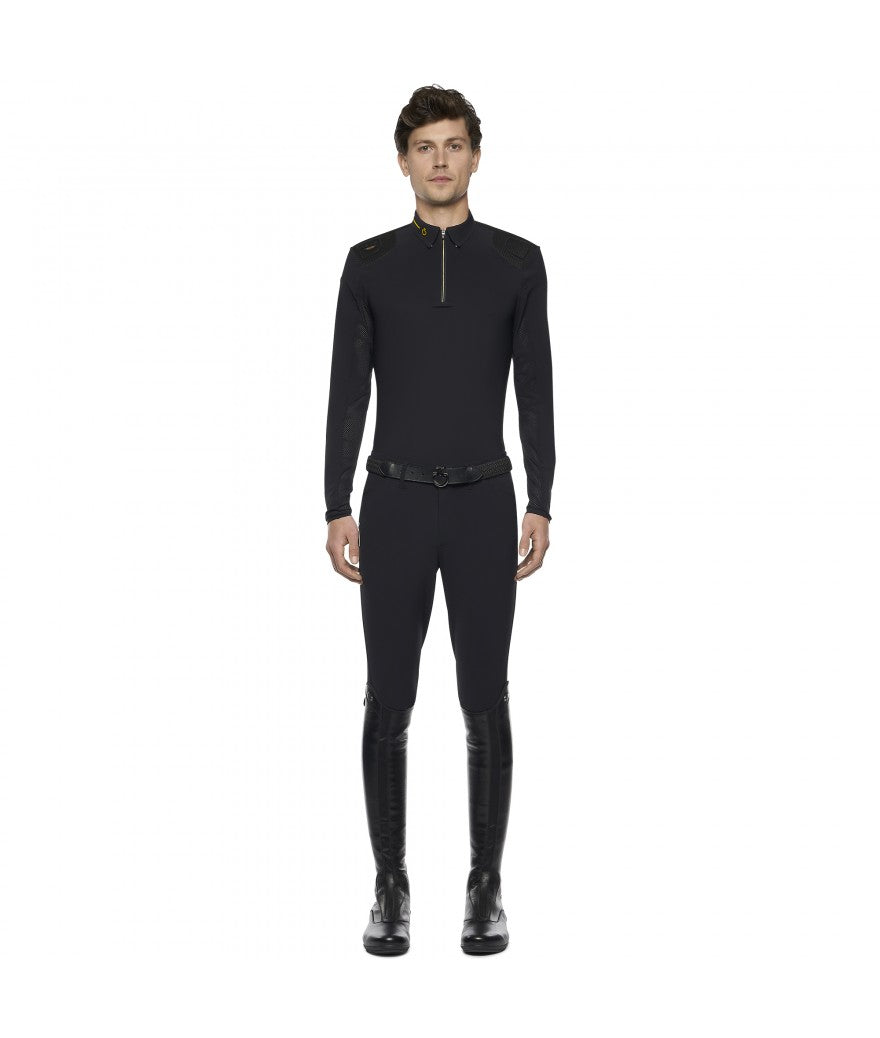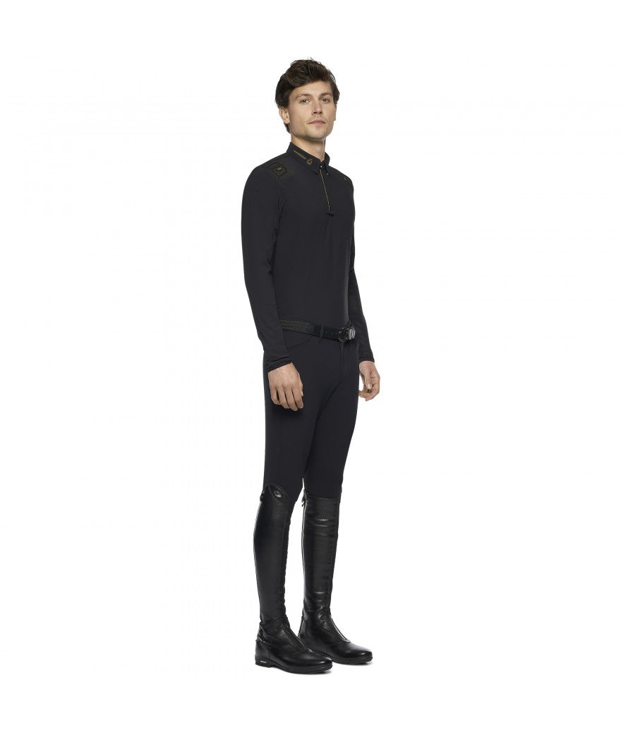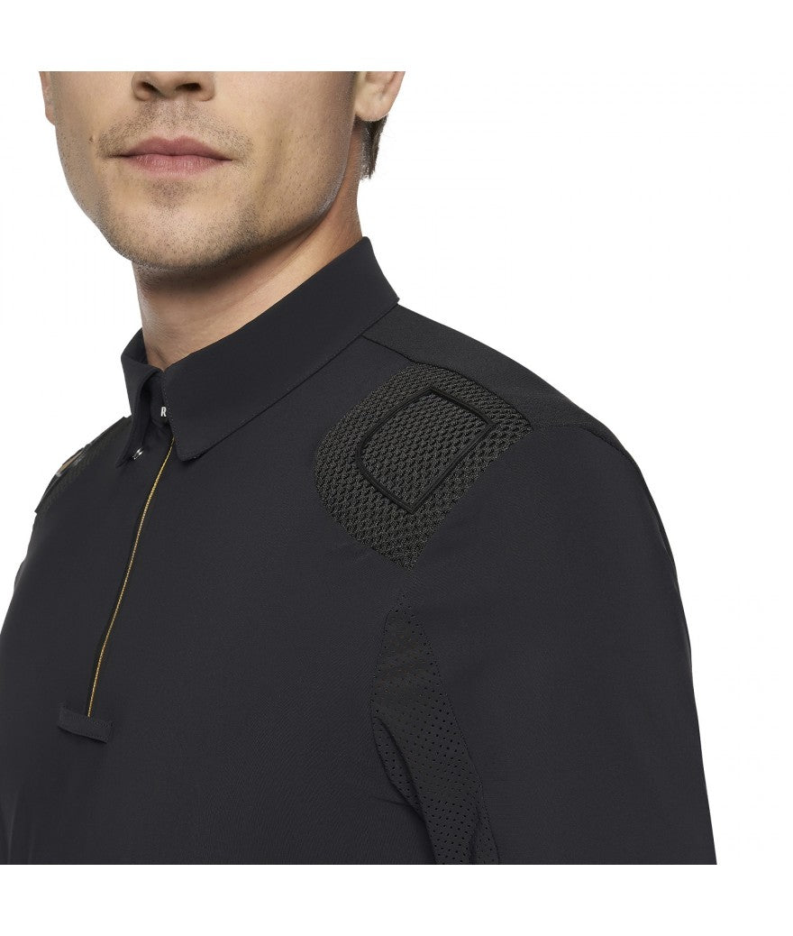Step into sophistication with the Men's R-Evo Epaulet Long Sleeve Polo. Immerse yourself in luxurious comfort, perfect for casual wear or stepping into the competition arena. The classic black hue adds an element of timeless elegance to your wardrobe.