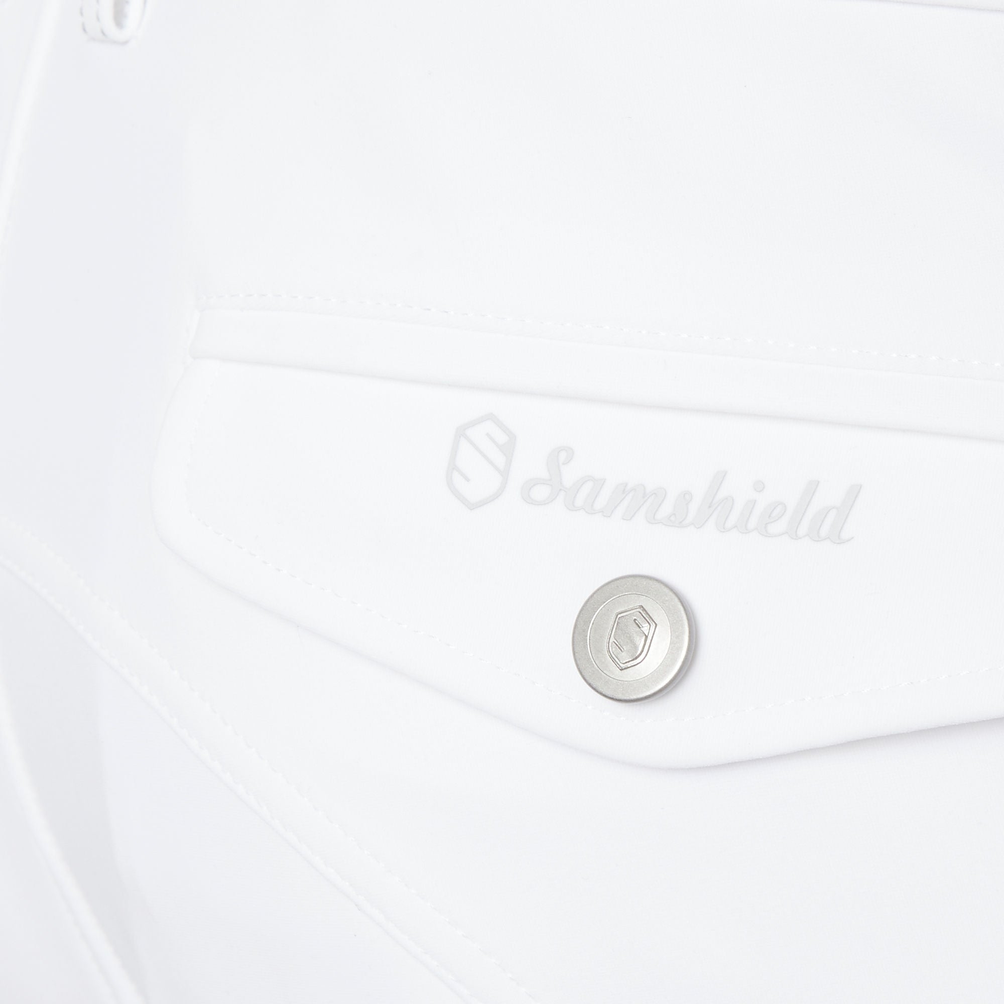 The Marceau/ Edouard Matt breeches are made from a breathable, quick drying Italian fabric that has 360' stretch for optimum freedom of movement, whilst a six layer new men's grip gives excellent stability in the saddle. Full working pockets at the front and back with matt finishes and embroidered Samshield blazon add practicality and style. The fabric is UV protected, maintaining colour quality but also protecting the rider's skin and is EPD certified, making it an environmentally friendly choice. Easy care, machine washable at 30'C