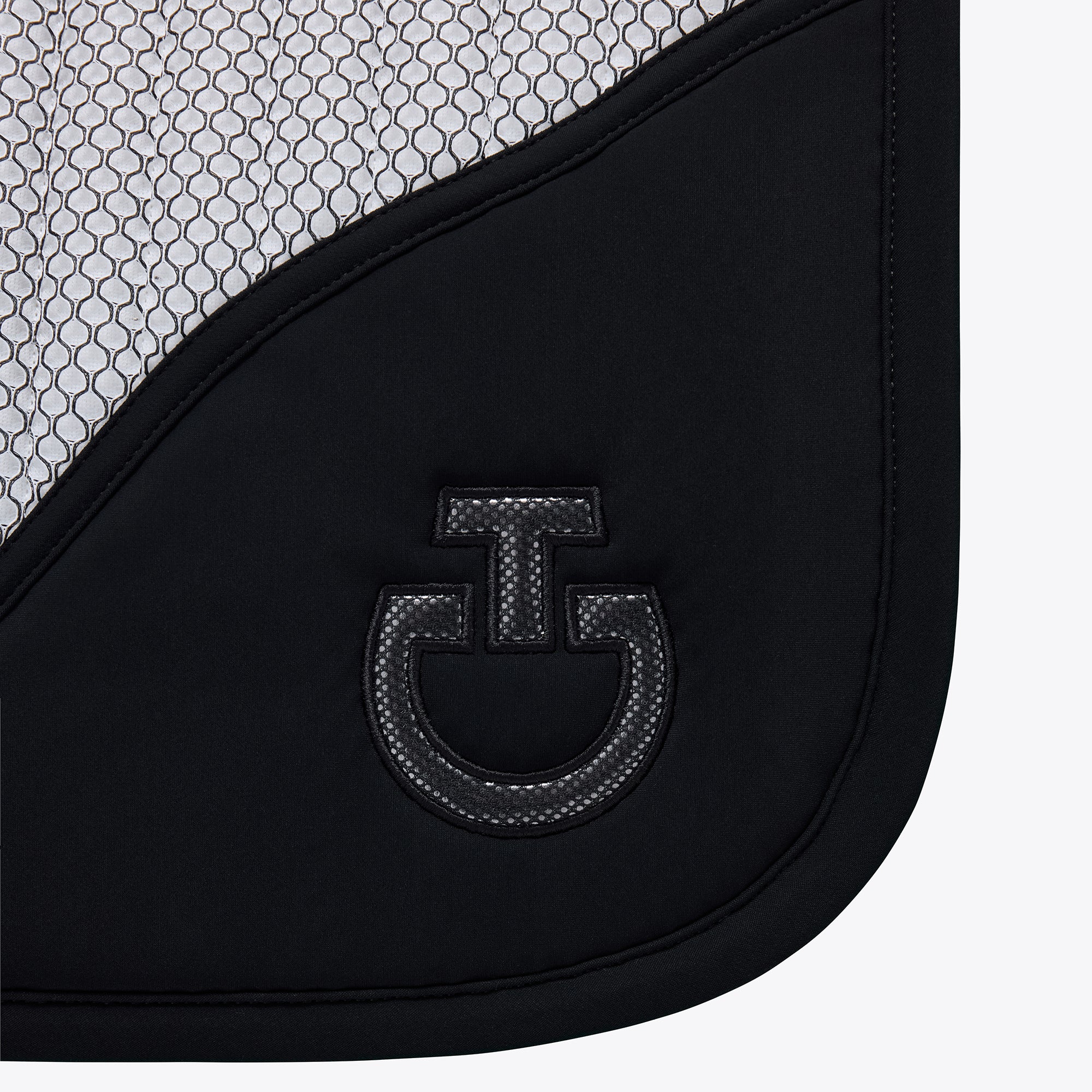 Discover a saddle pad designed for peak performance. The innovative structure of the material enhances thickness without sacrificing form. No more compromises on stability. Each jump, each ride, is met with a saddle pad that stands firm, providing the support you need. Elevate your riding with CT's commitment to quality.