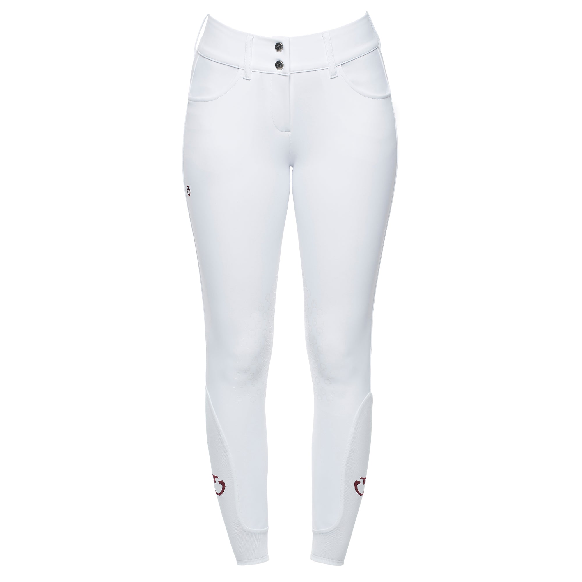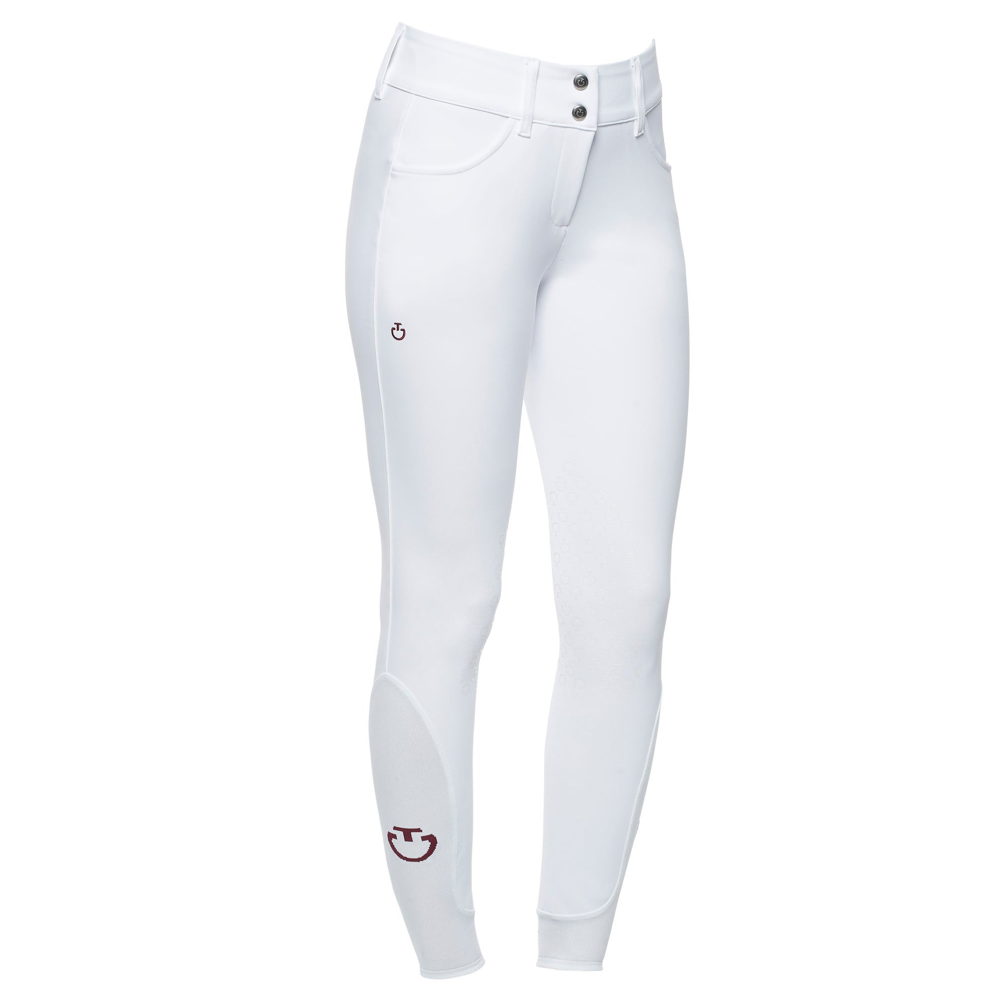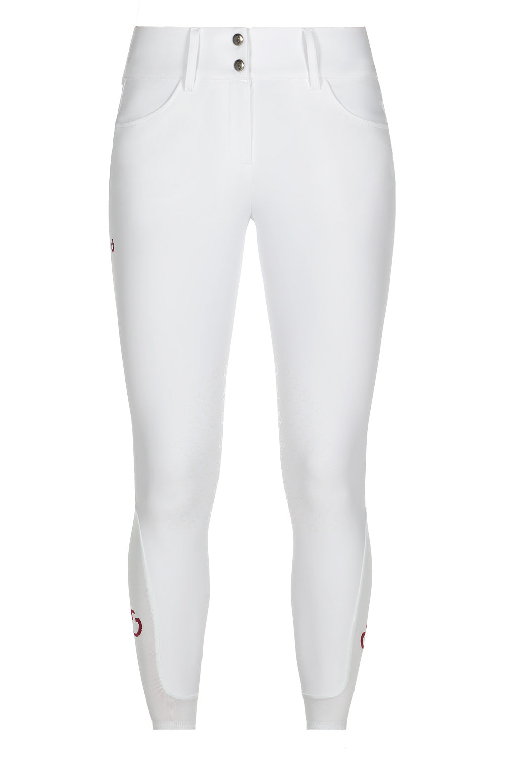 The 4-way stretch technical jersey used for these riding breeches provides maximum breathability and freedom of movement: this fabric adheres perfectly to your body, without constriction. The high-waisted band comes with an internal grip, wich provides the right fit over your shirt. It also features wide belt loops to accommodate your riding belt. The transparent knee grip allows the right stability, while the stretch-knit socks fit comfortably under your boots. The easy-care material provides antibacterial properties and UV protection, ideal for your summer training.