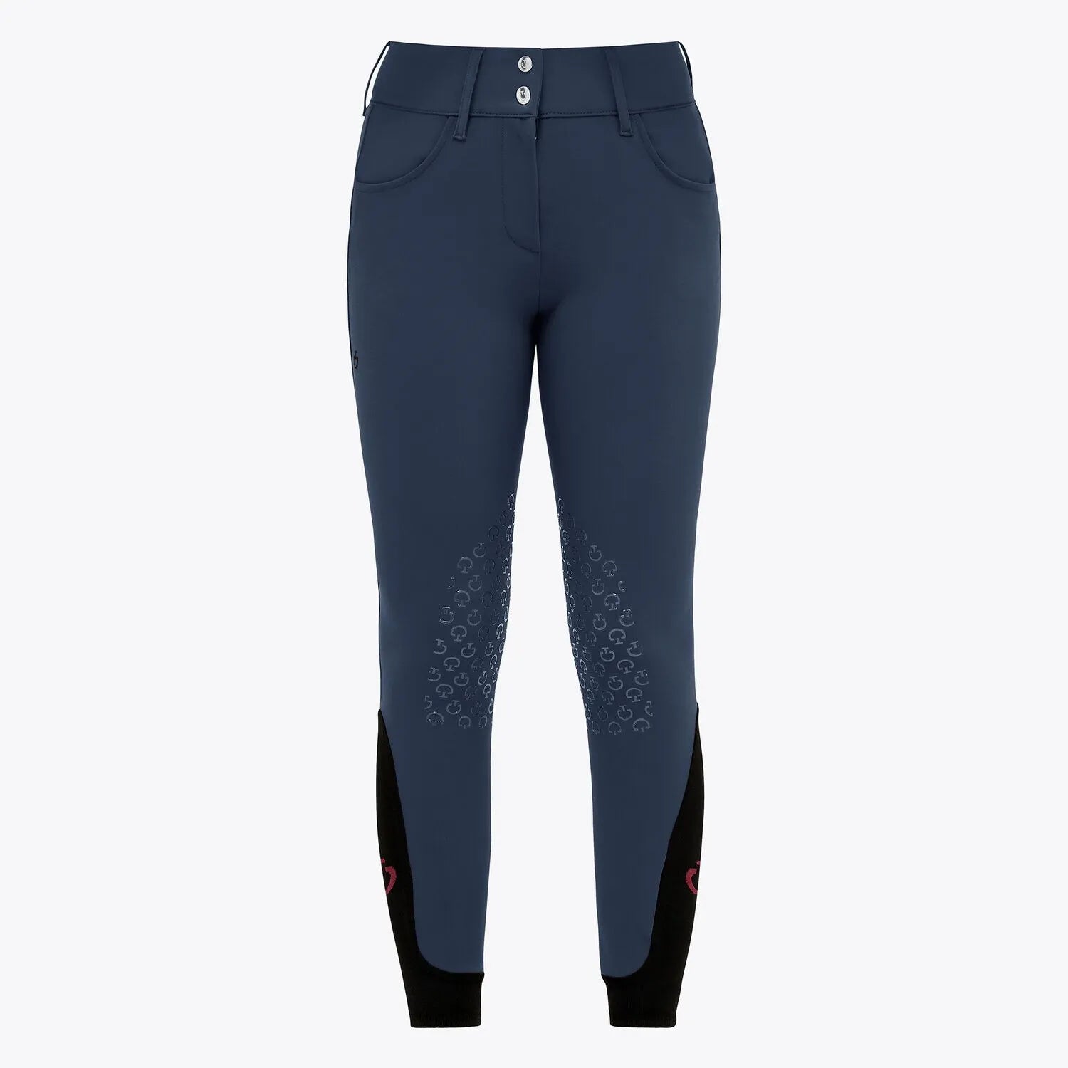The 4-way stretch technical jersey used for these riding breeches provides maximum breathability and freedom of movement: this fabric adheres perfectly to your body, without constriction. The high-waisted band comes with an internal grip, wich provides the right fit over your shirt. It also features wide belt loops to accommodate your riding belt. The transparent knee grip allows the right stability, while the stretch-knit socks fit comfortably under your boots. The easy-care material provides antibacterial properties and UV protection, ideal for your summer training.