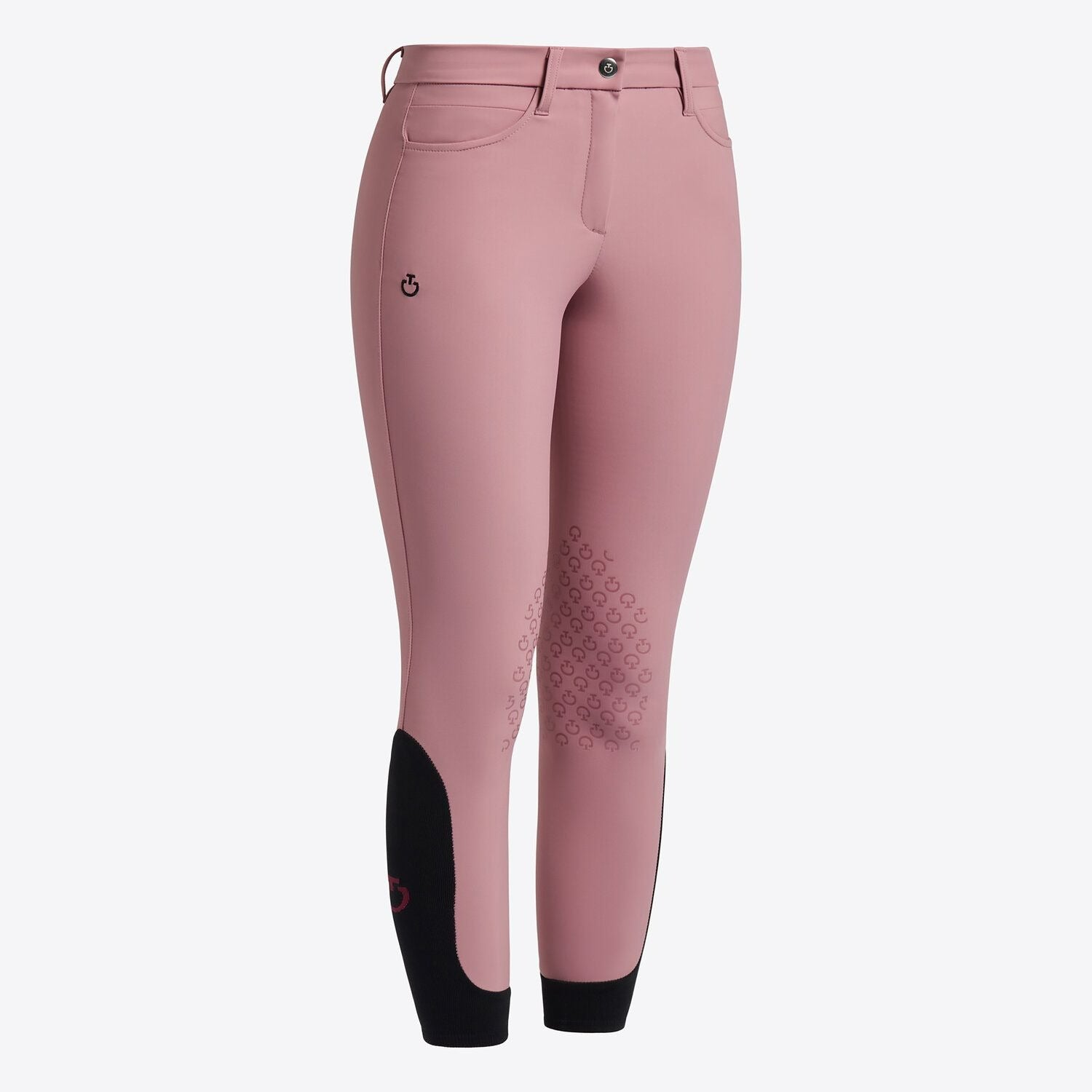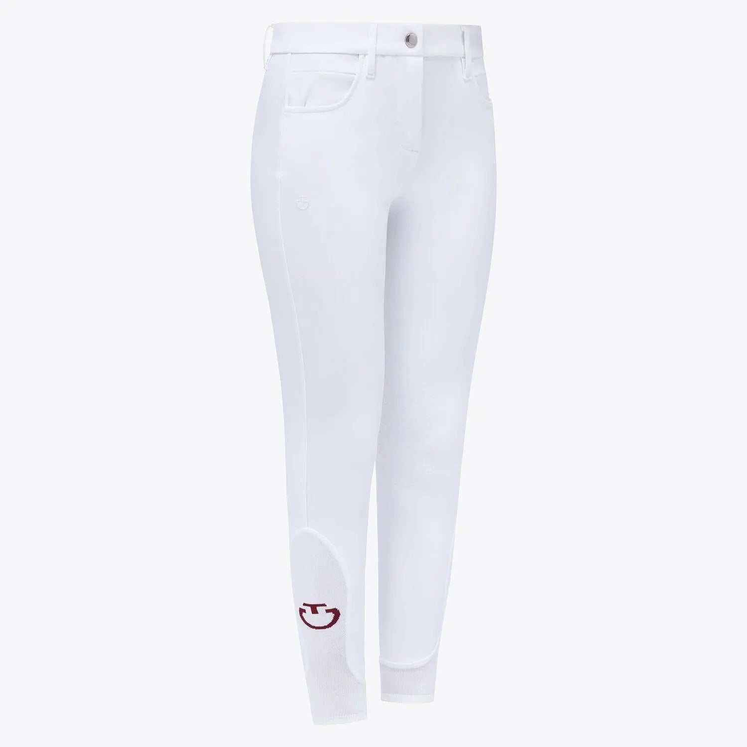 The bi-stretch technical fabric used to make the Cavalleria Toscana riding breeches for girls guarantees maximum comfort by perfectly following the movements of the body during the ride. The fabric is also breathable and antibacterial for the best comfort during training. The transparent grip at the knee allows stability on the crotch, while the elastic socks decorated with a contrasting logo offer a comfortable fit under the boots. The trousers feature two side pockets and a zip and button closure.