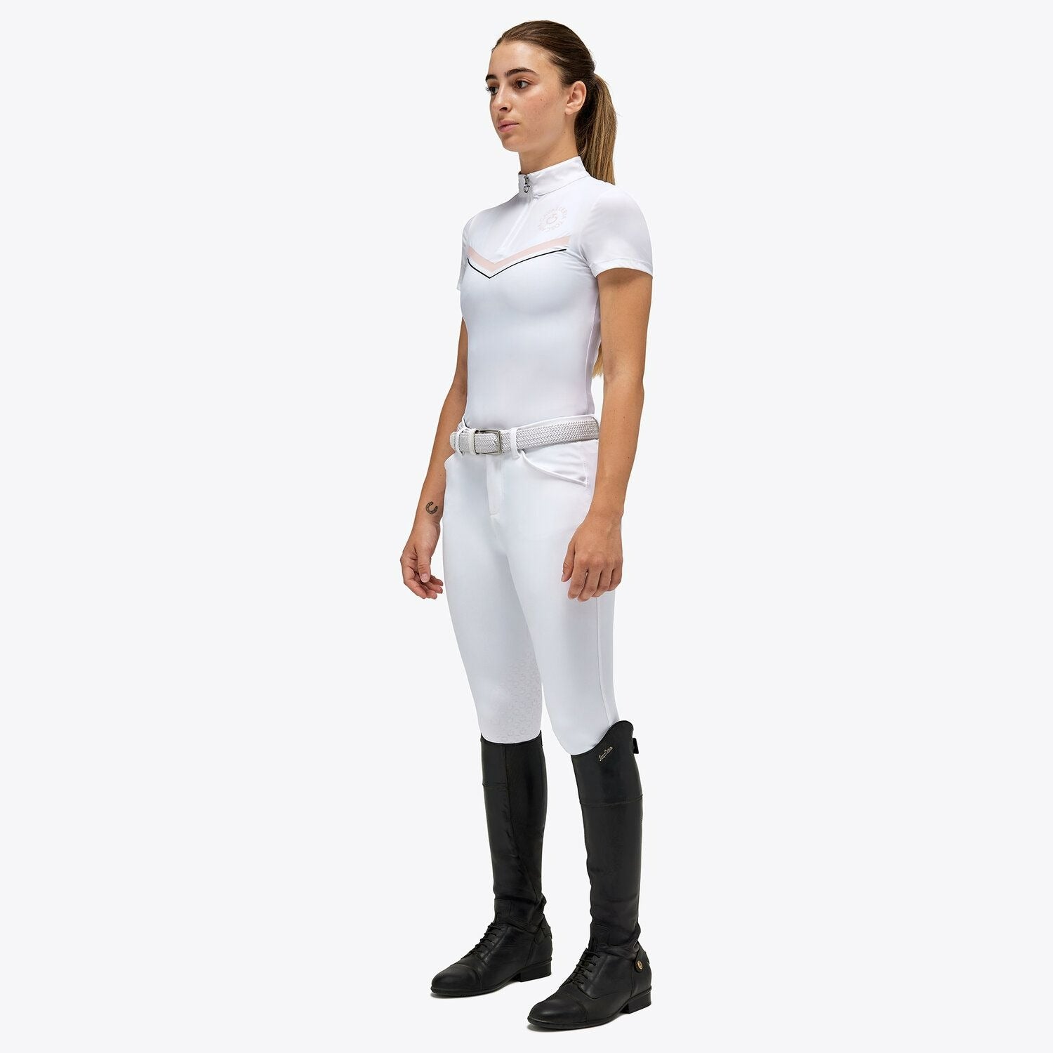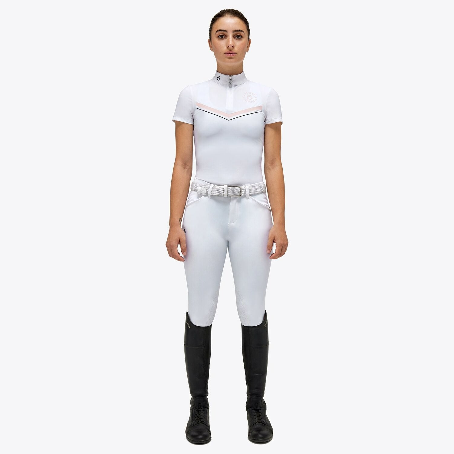 The Cavalleria Toscana CT Orbit Print Jersey Zip Competition Polo is the perfect choice for young horse lovers. Made with high-quality materials, this garment guarantees maximum comfort during training thanks to its breathability. Furthermore, its "Fast-drying, Easy-Care" technology makes it easy to care for and quick to dry, perfect for mothers looking for resistant and practical garments for their daughters. Thanks to its elegant design and functionality, the Cavalleria Toscana training polo for girls is a must-have for every young rider.