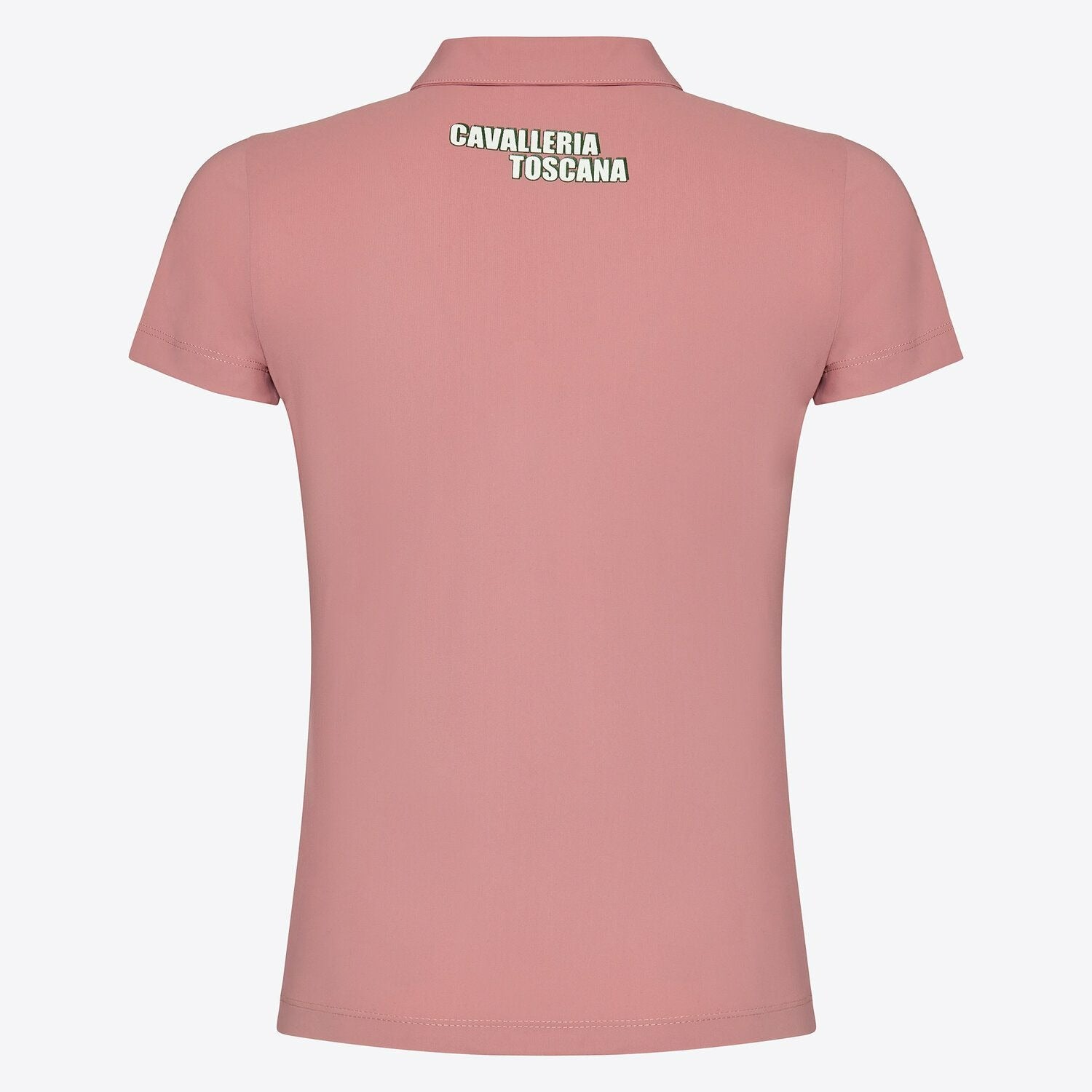 The Cavalleria Toscana girls' technical training polo is designed to offer optimal comfort and performance during equestrian activities. Made from high-quality technical jersey fabric, this polo ensures durability and breathability, making it ideal for intense training sessions. The design features a central white rubberized half-zip that facilitates easy wear and temperature regulation. The Cavalleria Toscana silicone logos in relief are positioned on the chest and back, giving a distinctive and refined look. This polo combines functionality and style, making it an essential piece in every young rider's wardrobe. Easy to maintain, this garment is perfect for those who seek the best in terms of quality and design during daily training.