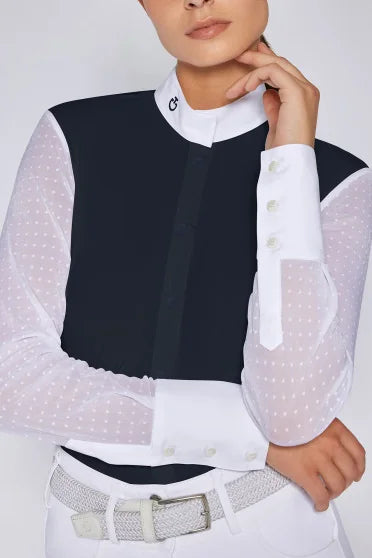 Cavalleria Toscana women's competition shirt with longsleeves and polka dot pattern on mesh sleeves. The shirt is breathable and quick-drying, offers ultimate freedom of movement and is easy to maintain.