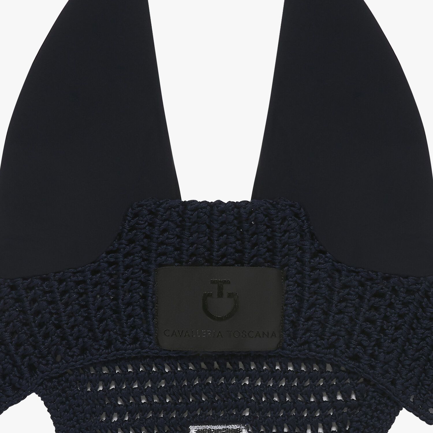 This crochet horse earnet is made from highly breathable and comfortable Egyptian cotton, while the ears are made from 4-way stretch technical jersey. The comfortable earnet ensures that the horse remains focused and keeps the bugs away. It's refined by an embroidered logo on the front. The high quality material can be machine washed and dries quickly.