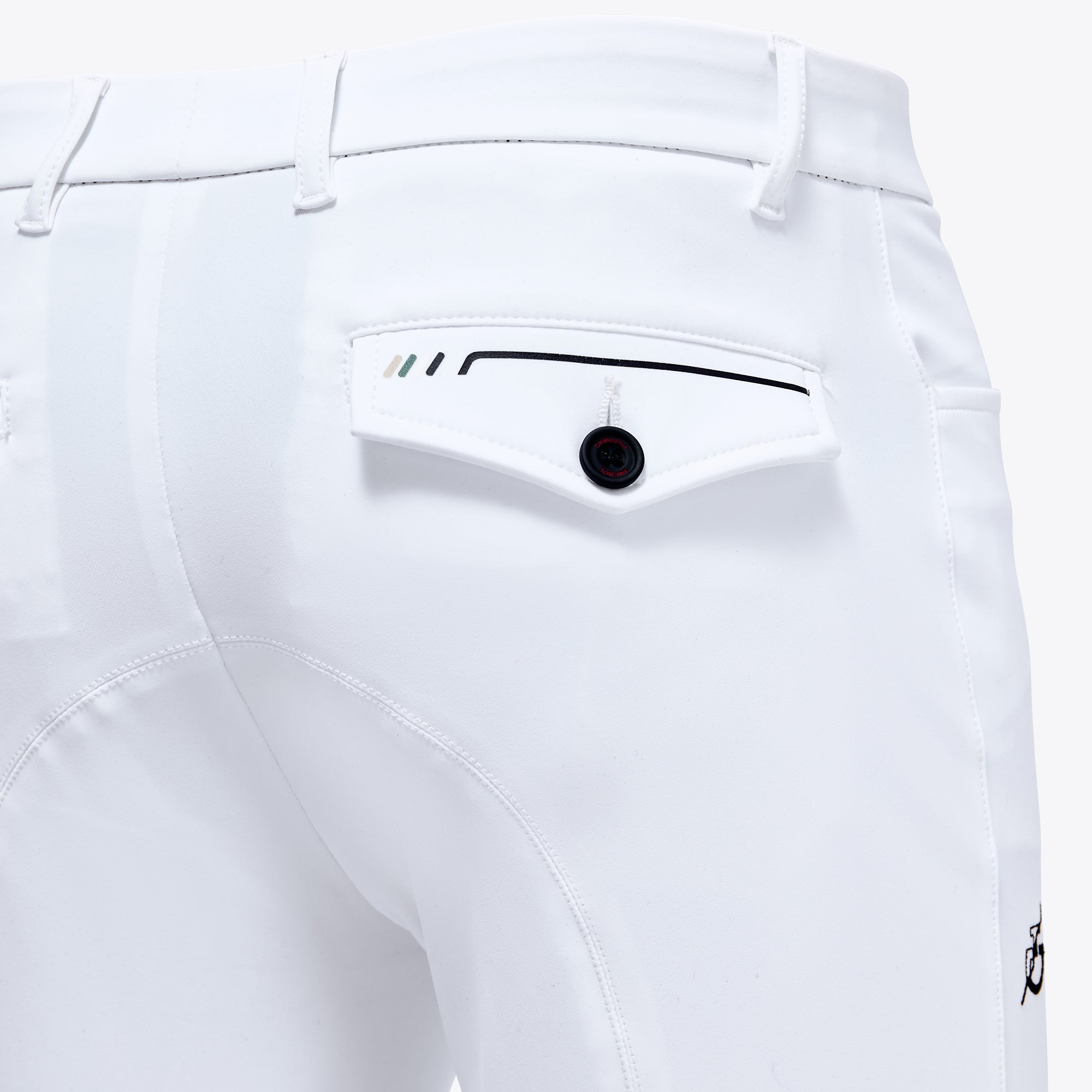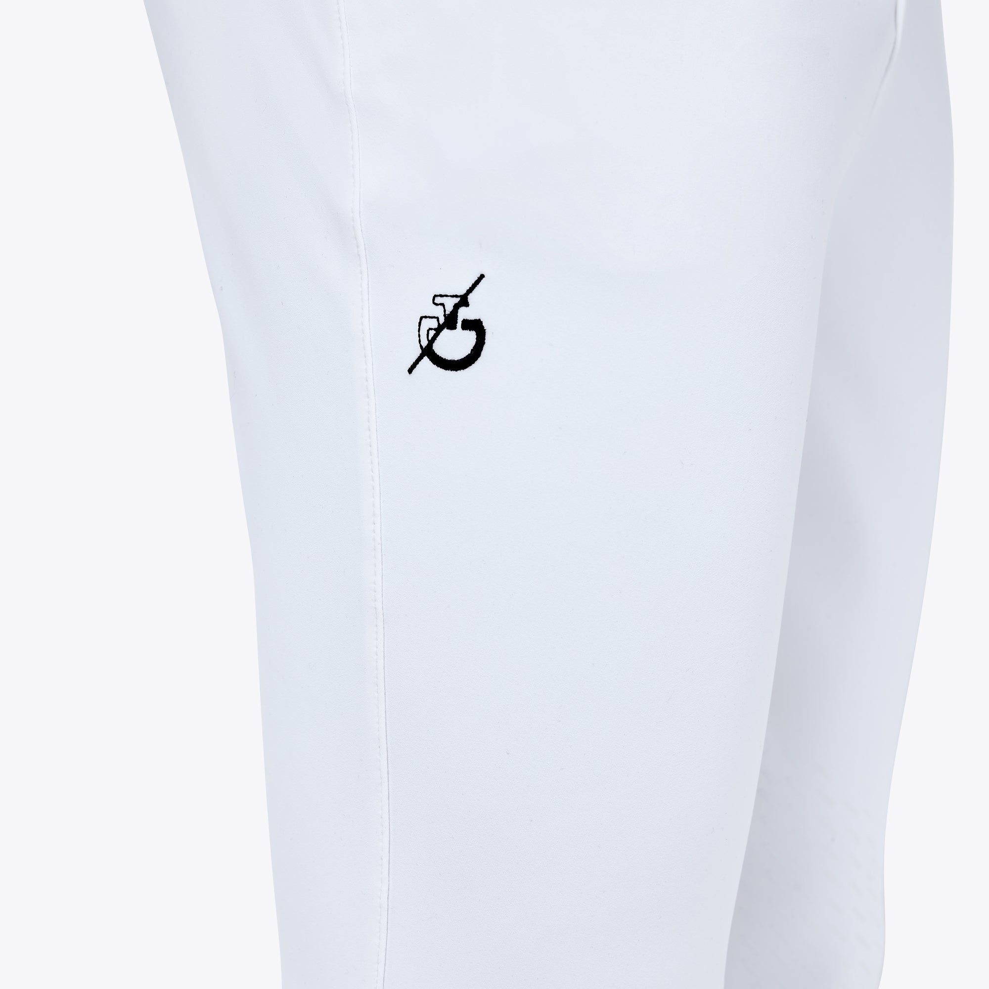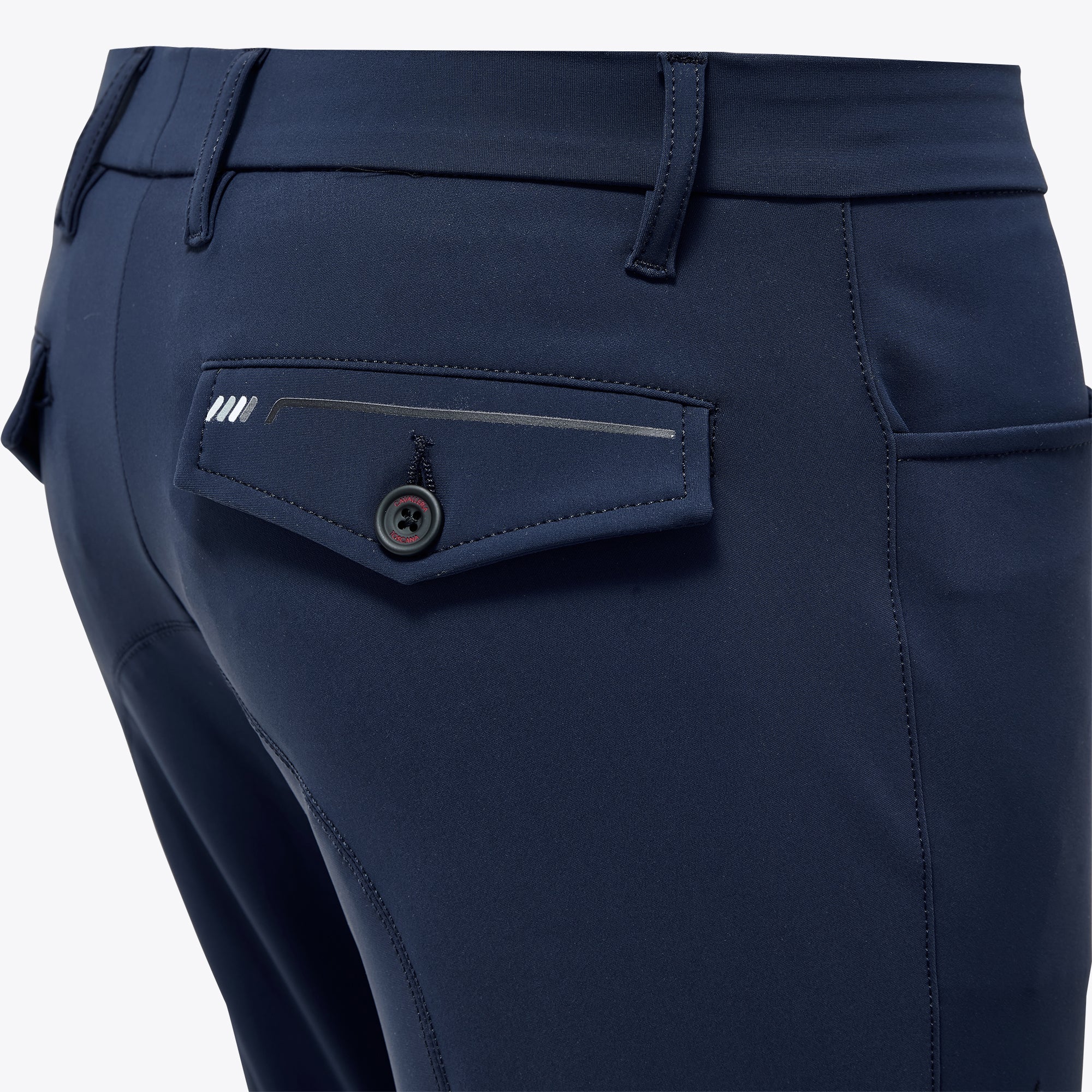 These riding breeches are the perfect fusion of elegance and performance thanks to their combination of distinctive details and functional construction, which ensures comfort and security. In breathable four-way stretch fabric, they have clear silicone grip details on the inner knee to ensure a stable, stay-put ride. The lower leg has stretch ‘sock’ panels that are comfortable worn under boots, decorated by the contrast-colour logo. The back pockets with flap and button are personalised with Cavalleria Toscana lettering.