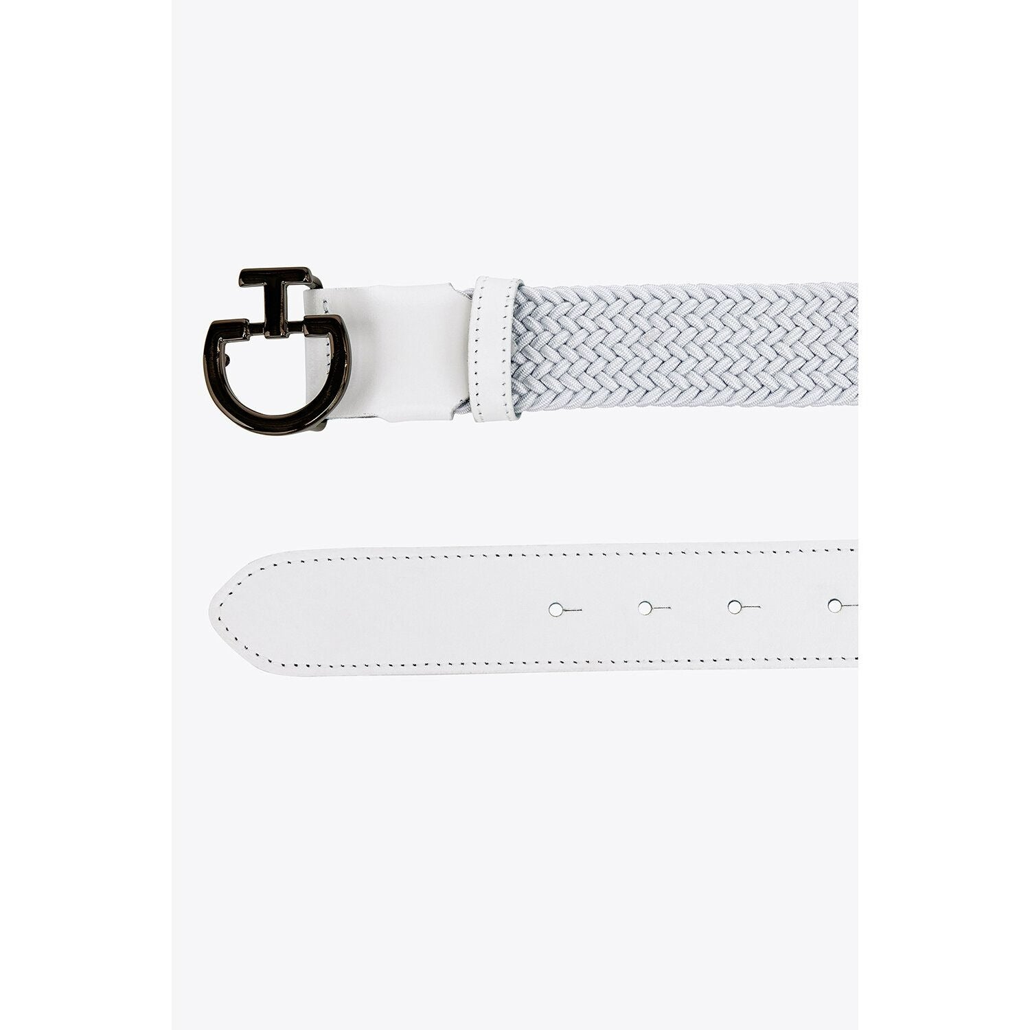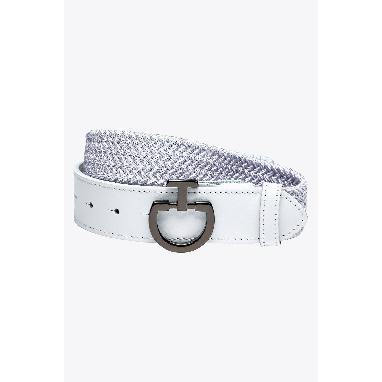 This belt for men is made of stretch rayon. It is made of woven leather, while the final part is in leather with a metal logo buckle. The waistband is thin and elastic, it does not impede movement during sports.