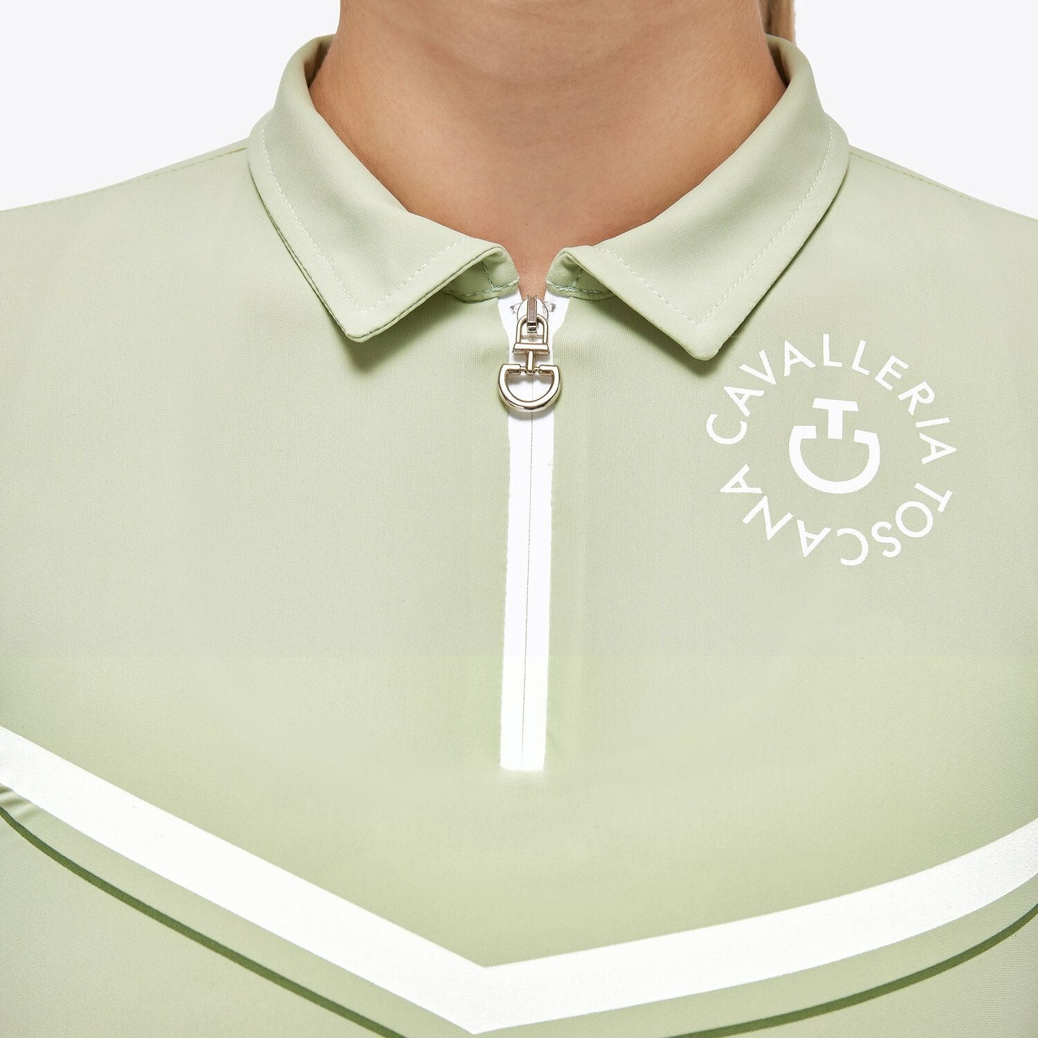 The Cavalleria Toscana CT Orbit Print jersey Zip Training Polo is the perfect choice for young horse lovers. Made with high-quality materials, this garment guarantees maximum comfort during training thanks to its breathability. Furthermore, its "Fast-drying, Easy-Care" technology makes it easy to care for and quick to dry, perfect for mothers looking for resistant and practical garments for their daughters. Thanks to its elegant design and functionality, the Cavalleria Toscana training polo for girls is a must-have for every young rider.