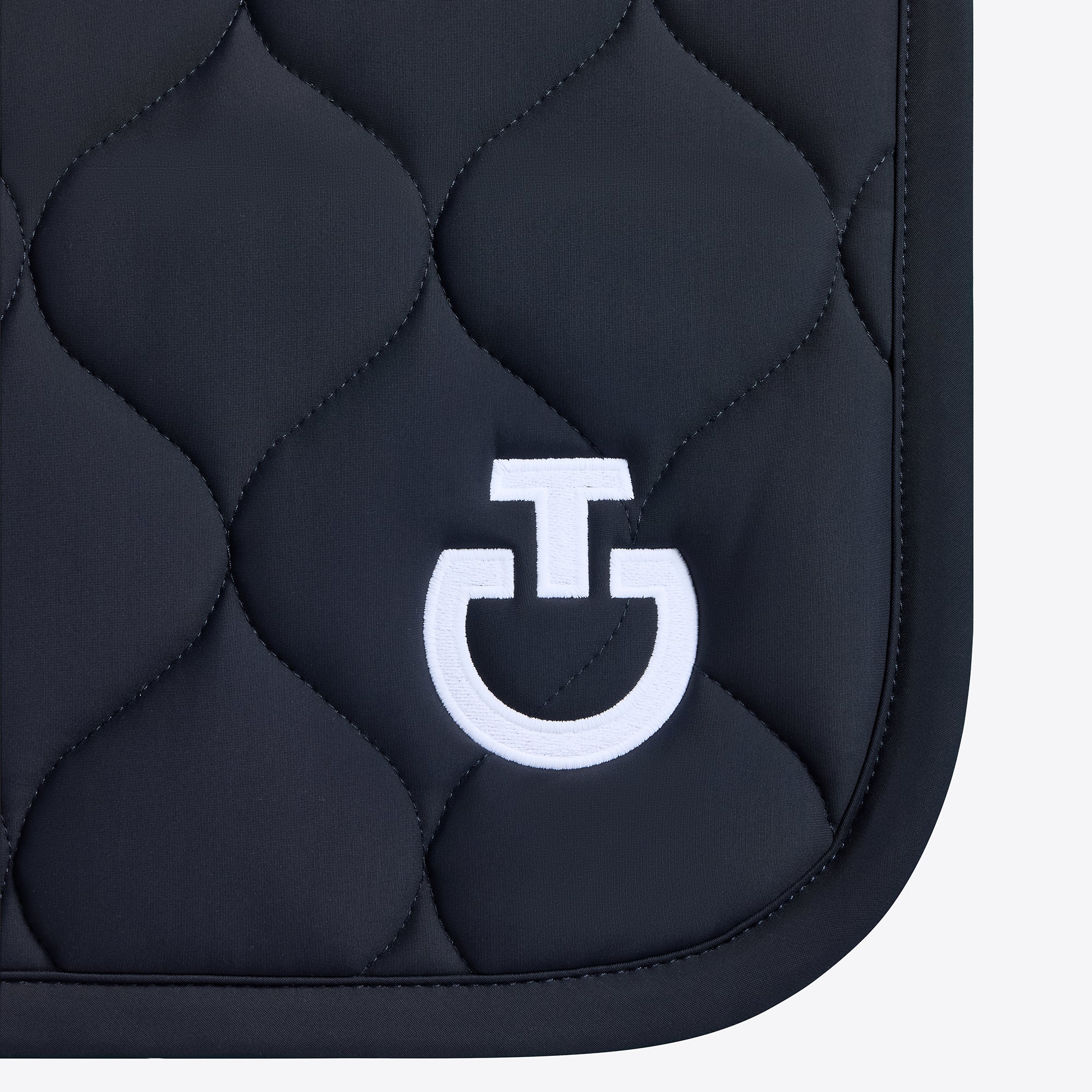 This saddle pad is made from technical jersey, which provides breathability to ensure maximum comfort for the horse. The anatomic design offers the right fit, while the 3D honeycomb cotton structure provides the right grip and mantains breathability. The circular-quilted saddle pad is refined by a contrasting embroidered logo on the left side. The easy care material offers antibacterial properties and can be machine washed.