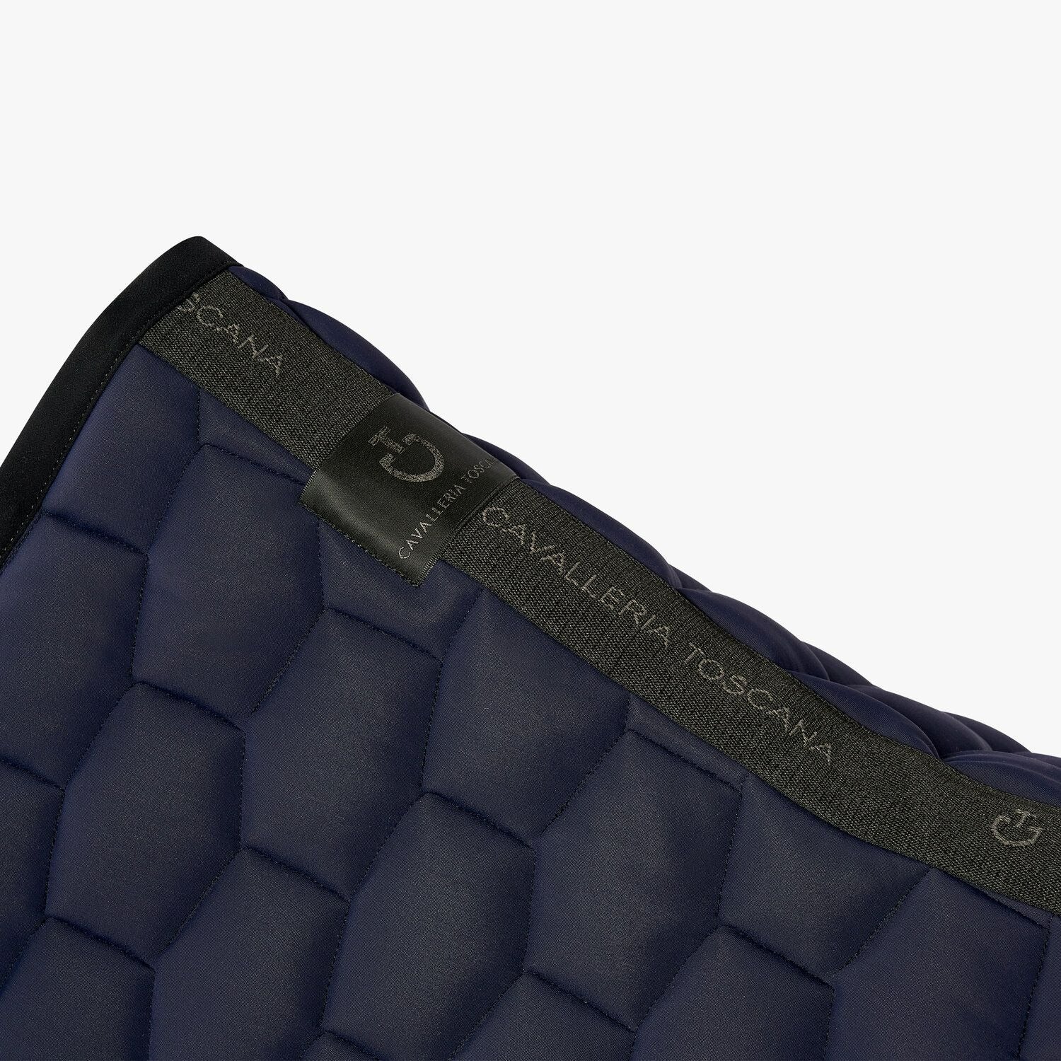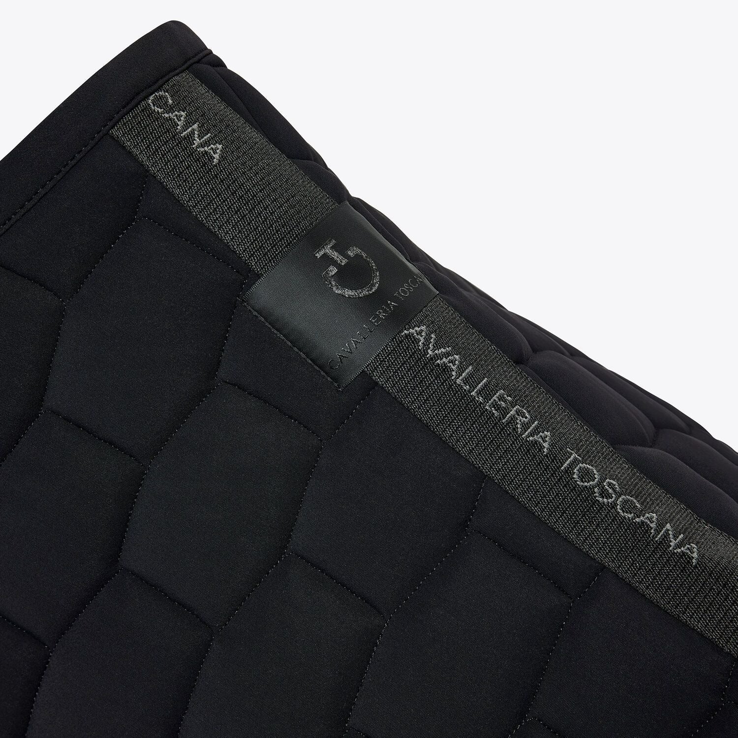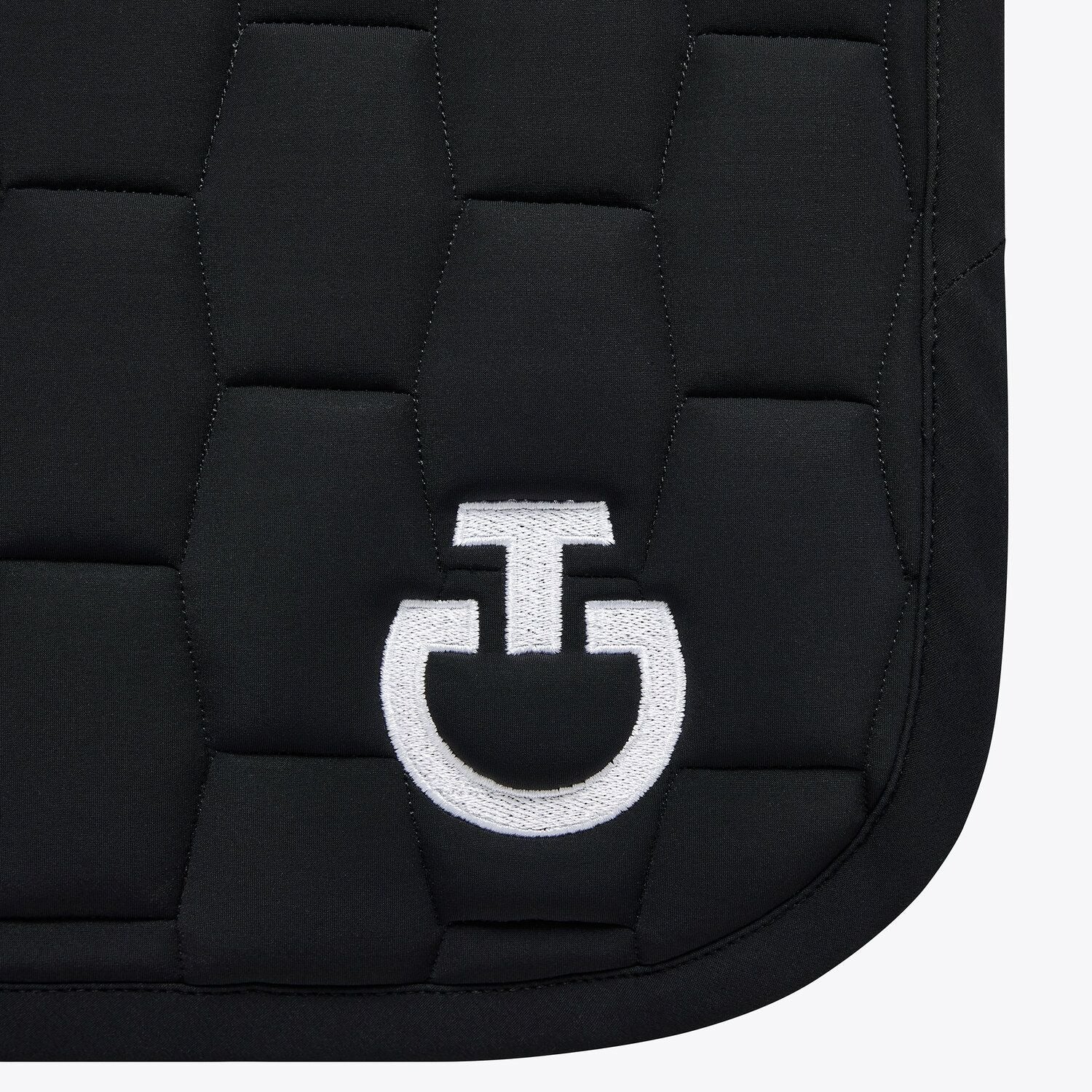 This Cavalleria Toscana jumping saddle pad combines refined aesthetics and practicality. The outer face in performance fabric is lined in a thin layer of padding and breathable, antibacterial waffle-texture cotton fabric. The robust construction ensures it holds up to multiple washes and lasts over time. Cut for an anatomical, close-contact fit that will suit any horse, details such as wave quilting, piping along the edges, and an embroidered logo add sophistication.