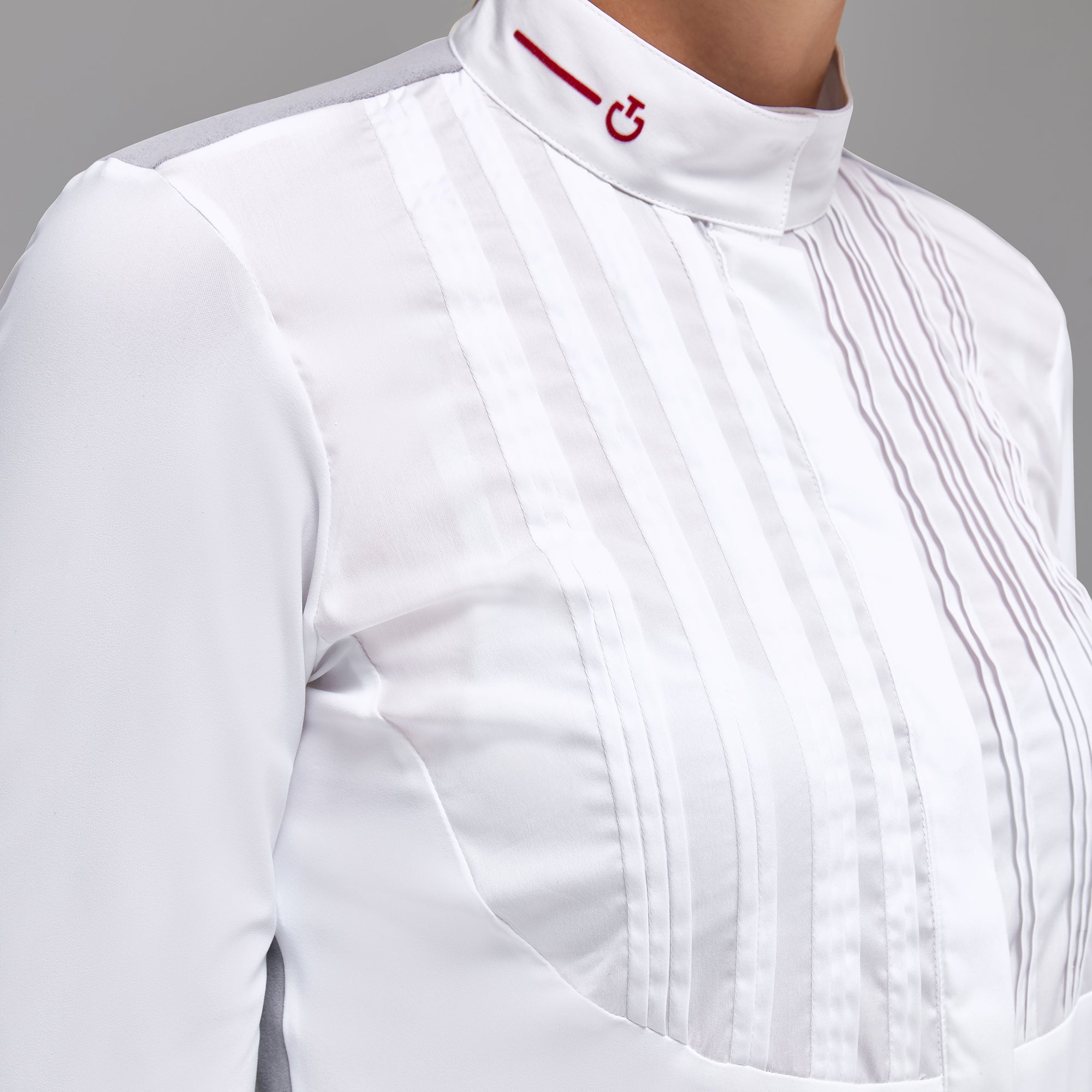 Step into the arena with confidence, dressed in the CT Revo. The long sleeves offer both coverage and a touch of refinement, while the pleated poplin bib adds a distinctive elegance to your riding attire. It's not just clothing; it's an expression of your passion for equestrian excellence.