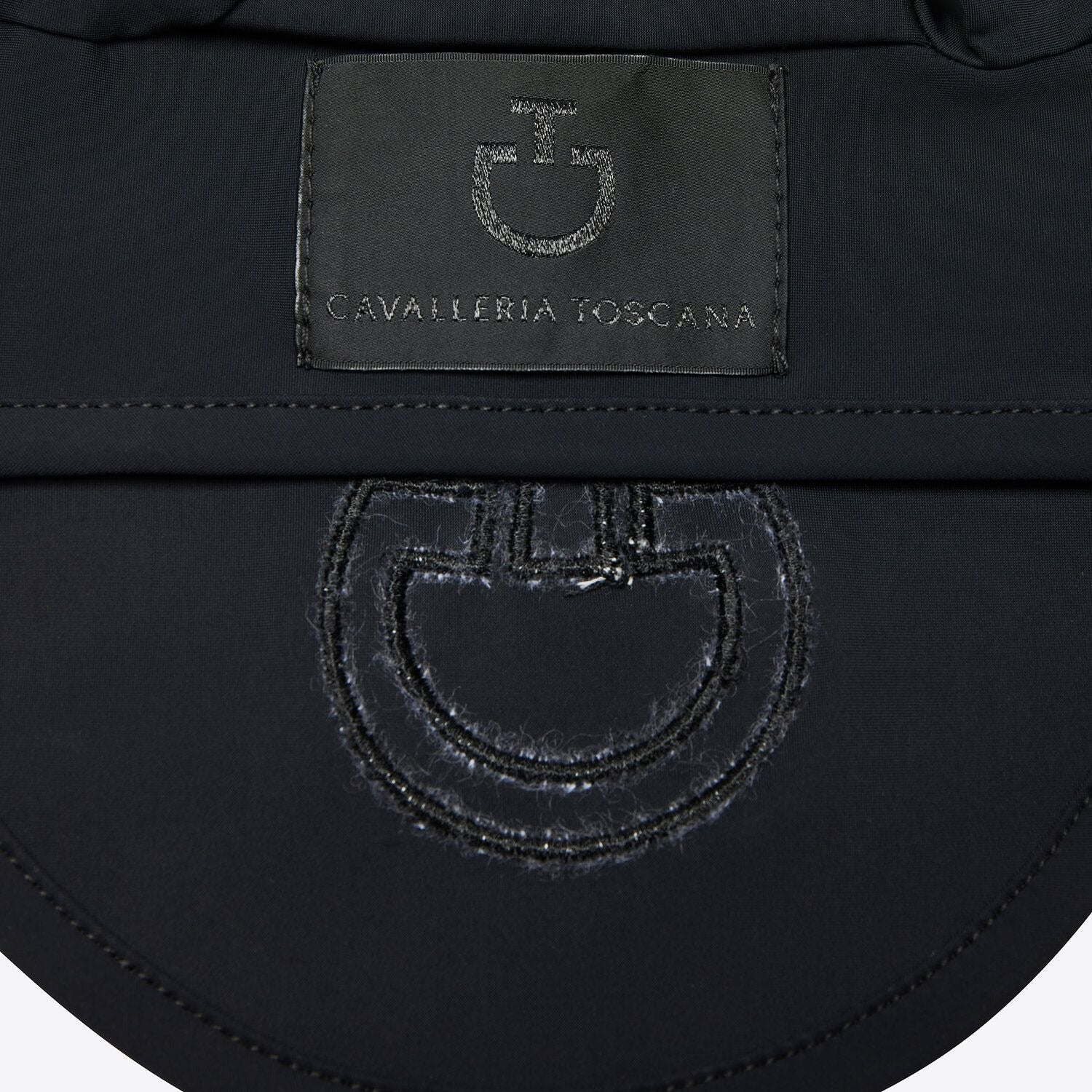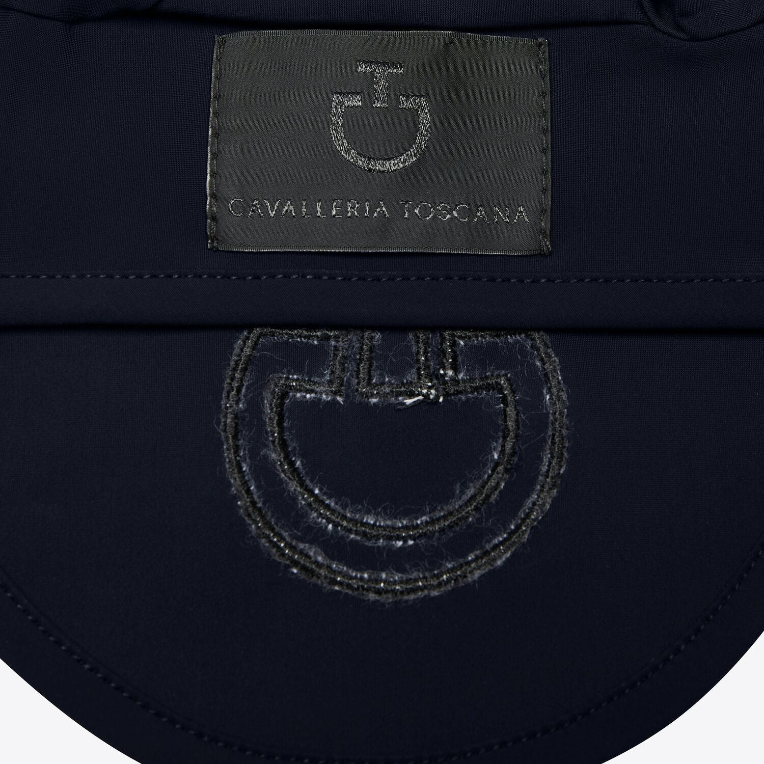 The Cavalleria Toscana Revolution horse earnet is designed to offer protection and comfort during equestrian activities. Made with high-quality materials, this earnet ensures an excellent fit and durability. Finished with a contrast trim and an embroidered logo on the front, it adds a touch of sophistication to your horse's look. The high-quality material is machine washable and dries quickly, ensuring easy maintenance. This elegant horse earnet is made from lightweight and breathable technical jersey, providing extreme comfort. It allows the horse to stay focused without being disturbed by insects, making it ideal for everyday use or competitions. The Cavalleria Toscana horse earnet combines functionality and style, making it an essential accessory for those who want the best for their horse.