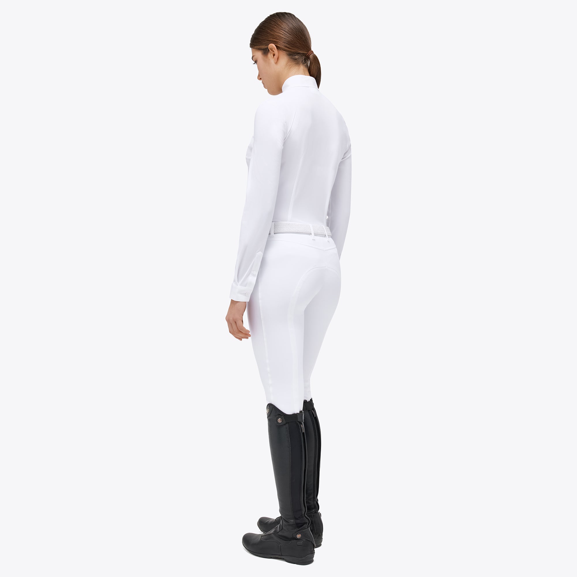 Elevate your equestrian style with this competition shirt. The Sangallo insert lends a touch of femininity, while the jersey ensures maximum freedom of movement. Long sleeves for a sophisticated look. The Cavalleria Toscana logo emphasizes attention to detail.