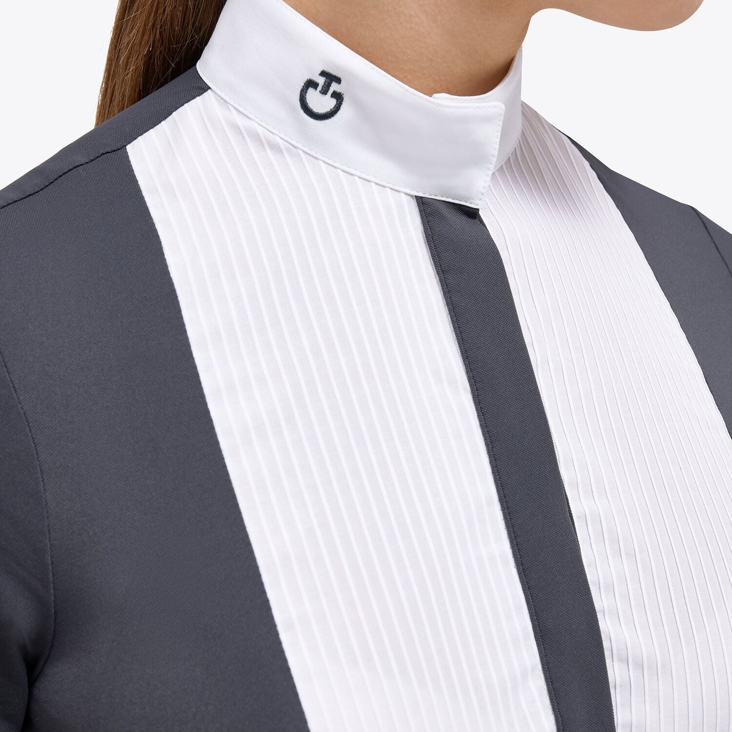 Indulge in the epitome of elegance with our CT Tech Piquet competition shirt for women. Crafted from high-quality cotton, this shirt is a testament to both style and functionality. The front bib detail adds a sophisticated touch, making it the perfect choice for competitions. The inclusion of cotton fabric guarantees optimal breathability, ensuring you stay cool even in the heat of the moment. And of course, the discreet Cavalleria Toscana logo adds a touch of class to this impeccable garment.
