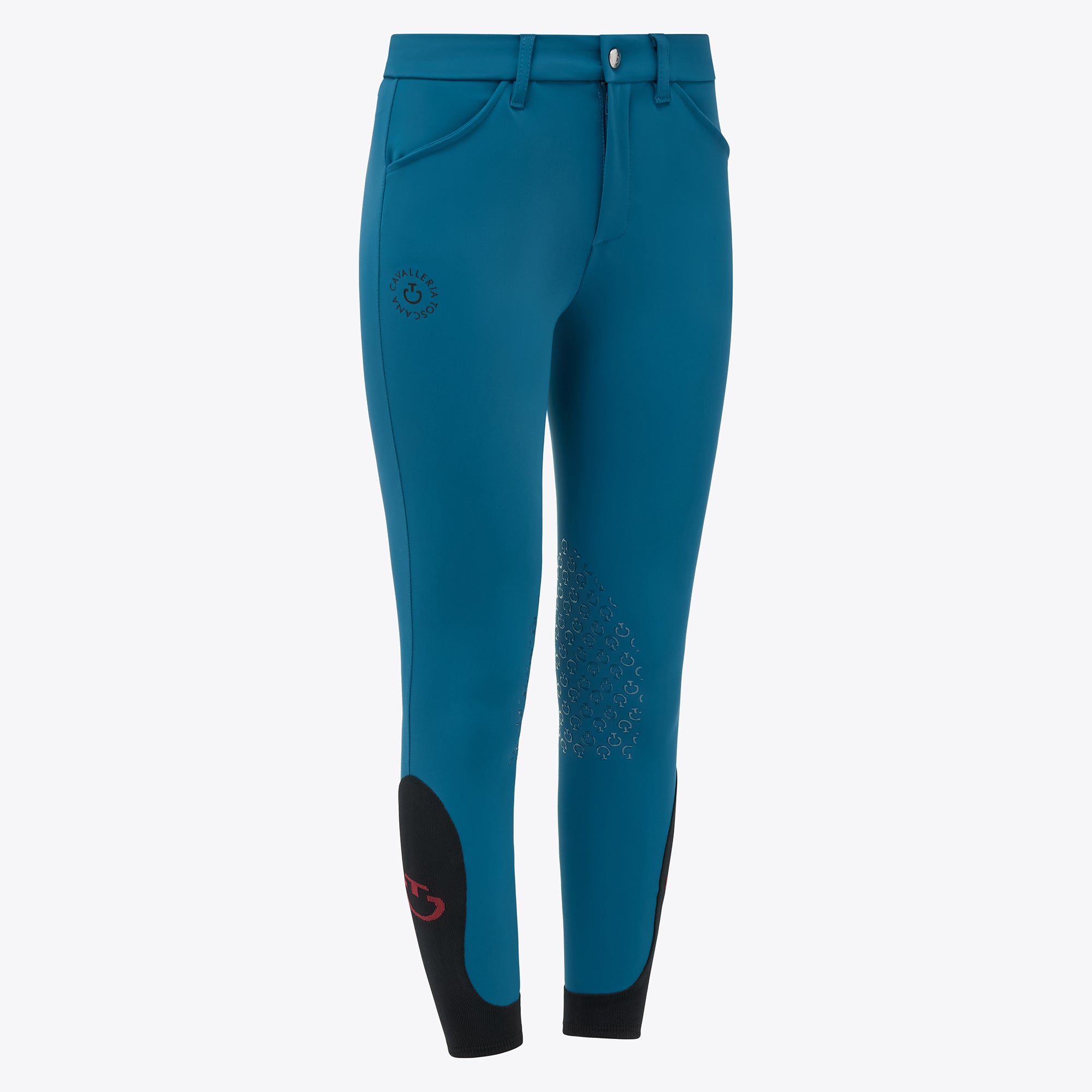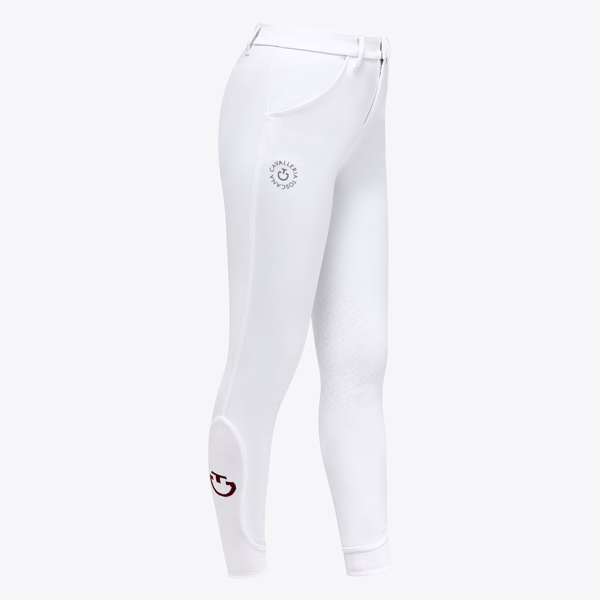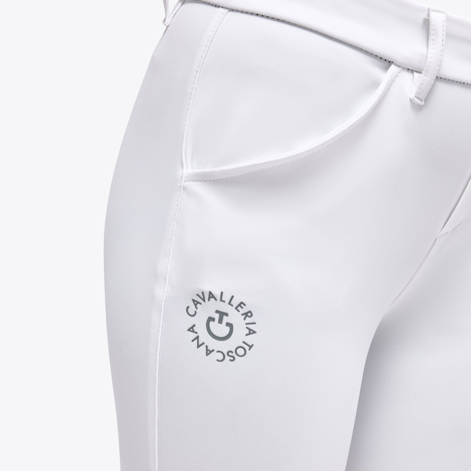 These riding breeches are the perfect fusion of elegance and performance thanks to their combination of distinctive details and functional construction, which ensures comfort and security. In breathable, antibacterial four-way stretch fabric, they feature small clear grip details to ensure stability in the saddle. The lower leg has stretch ‘sock’ panels that are comfortably worn under boots, decorated by the Cavalleria Toscana logo in a contrasting colour at the side.
