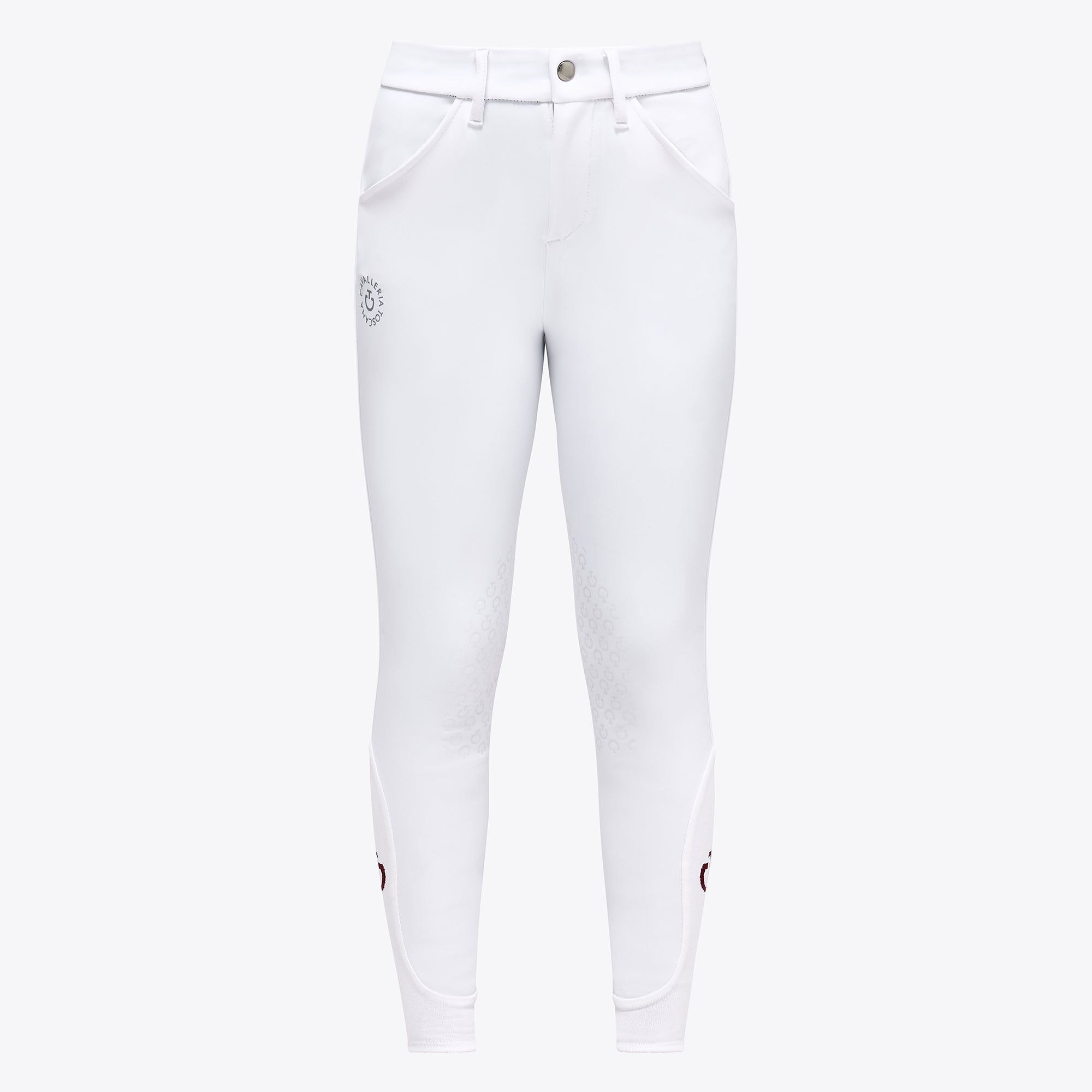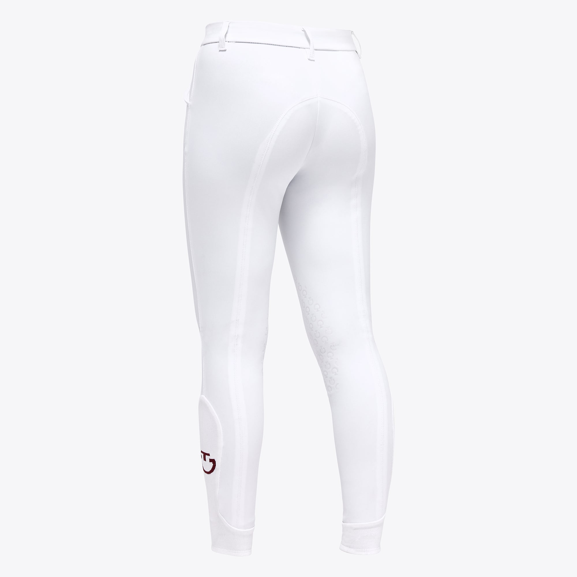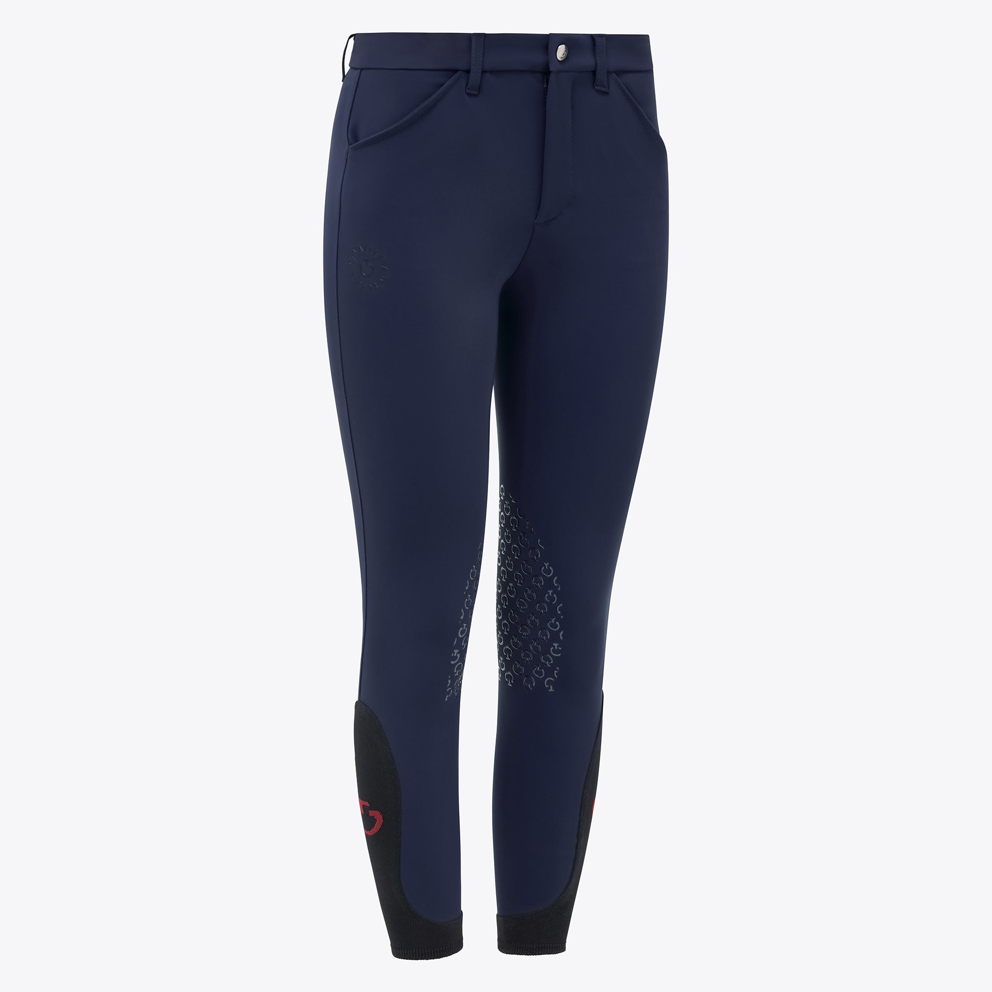These riding breeches are the perfect fusion of elegance and performance thanks to their combination of distinctive details and functional construction, which ensures comfort and security. In breathable, antibacterial four-way stretch fabric, they feature small clear grip details to ensure stability in the saddle. The lower leg has stretch ‘sock’ panels that are comfortably worn under boots, decorated by the Cavalleria Toscana logo in a contrasting colour at the side.