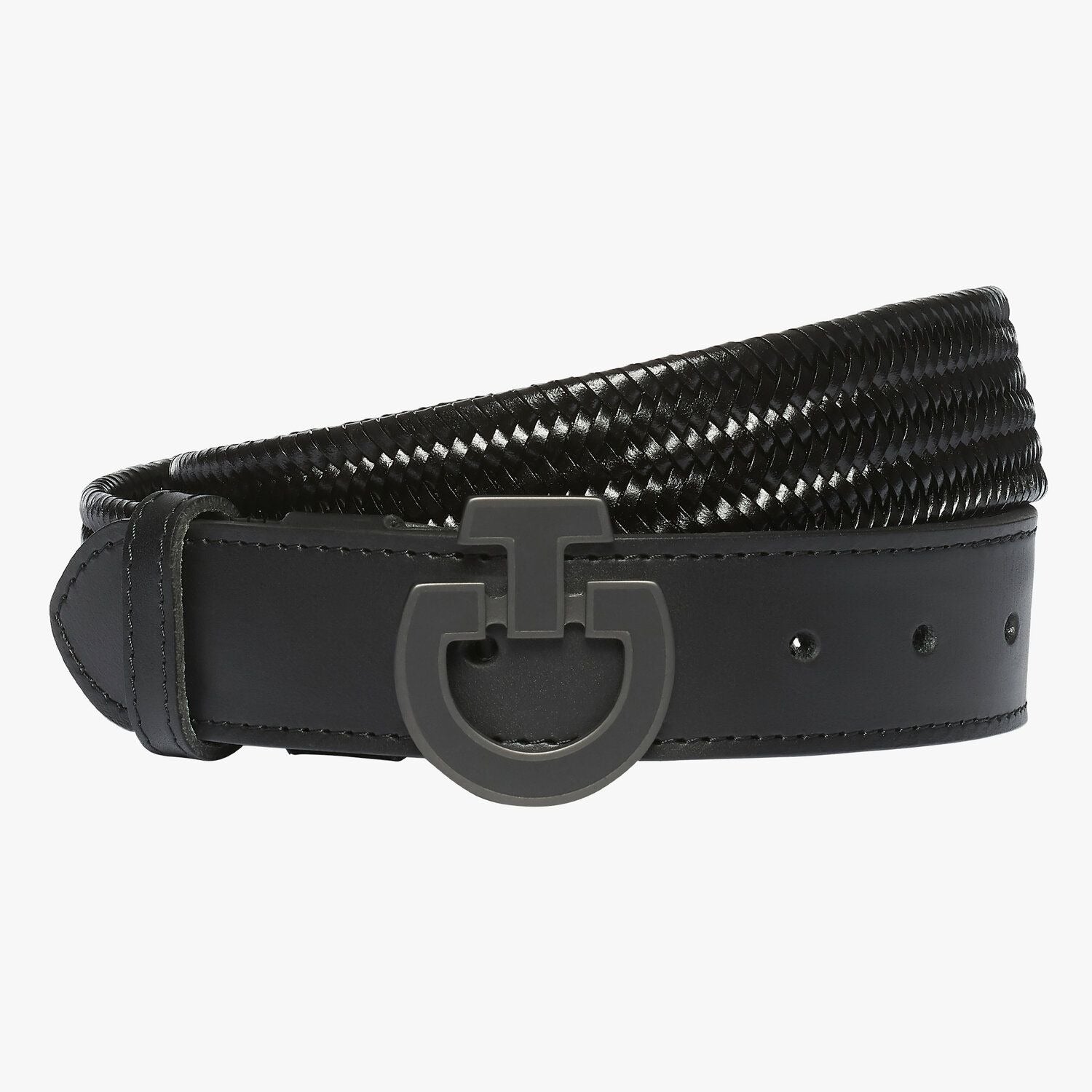 This women's woven leather belt is made from elastic material that doesn't constrain your movements during sports activities. The end tip is made from smooth tone on tone leather and features a metal logo clasp.