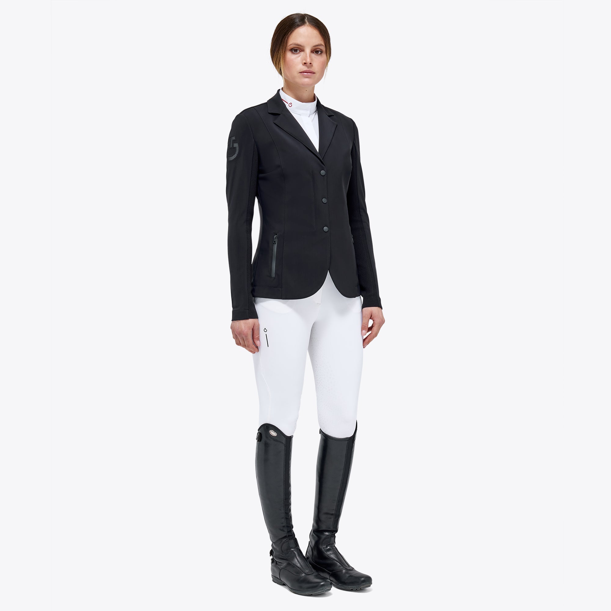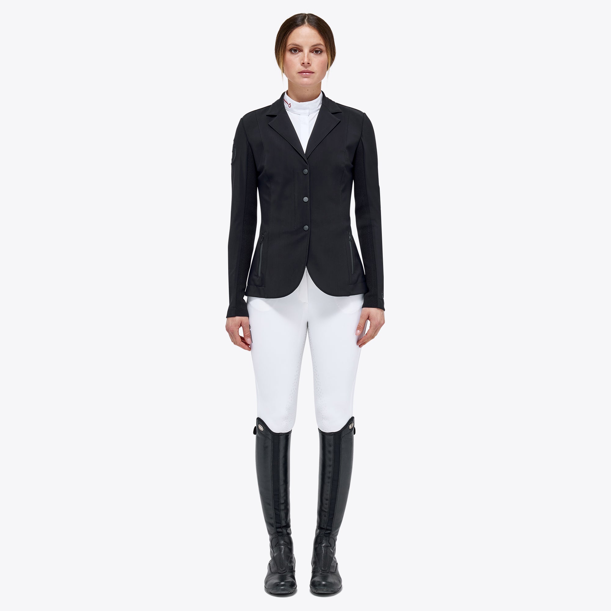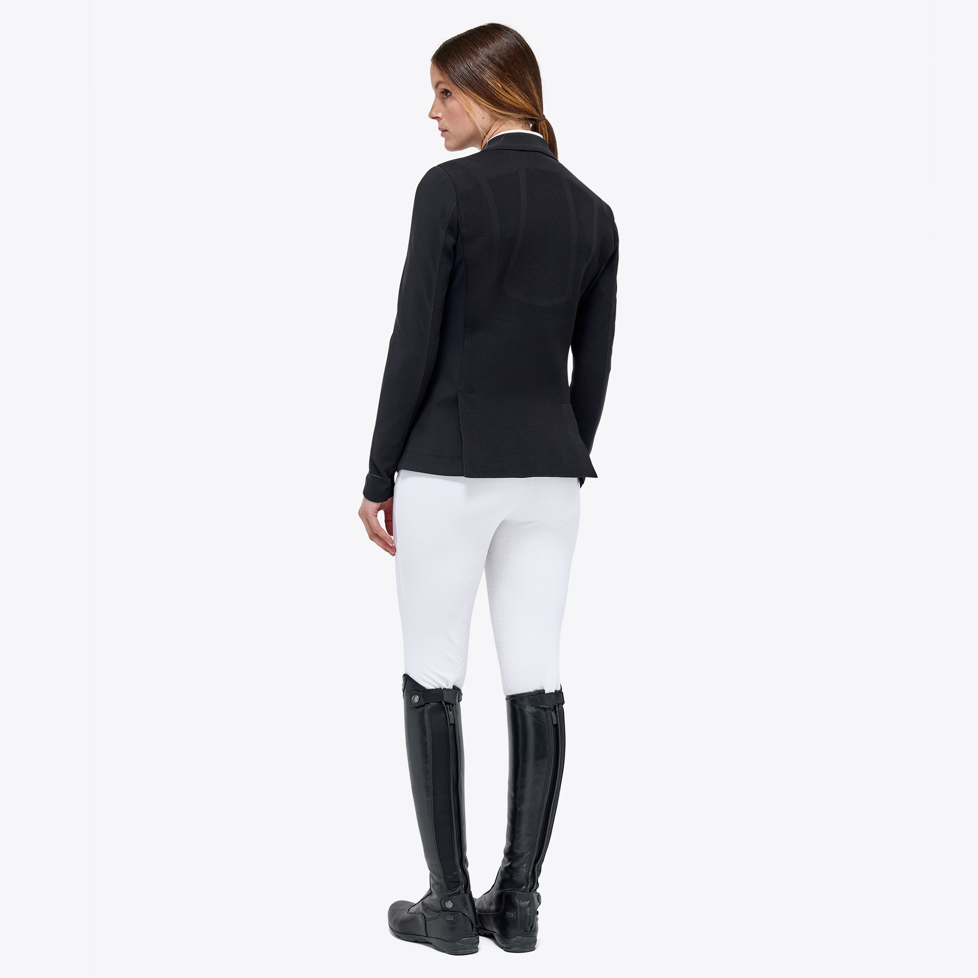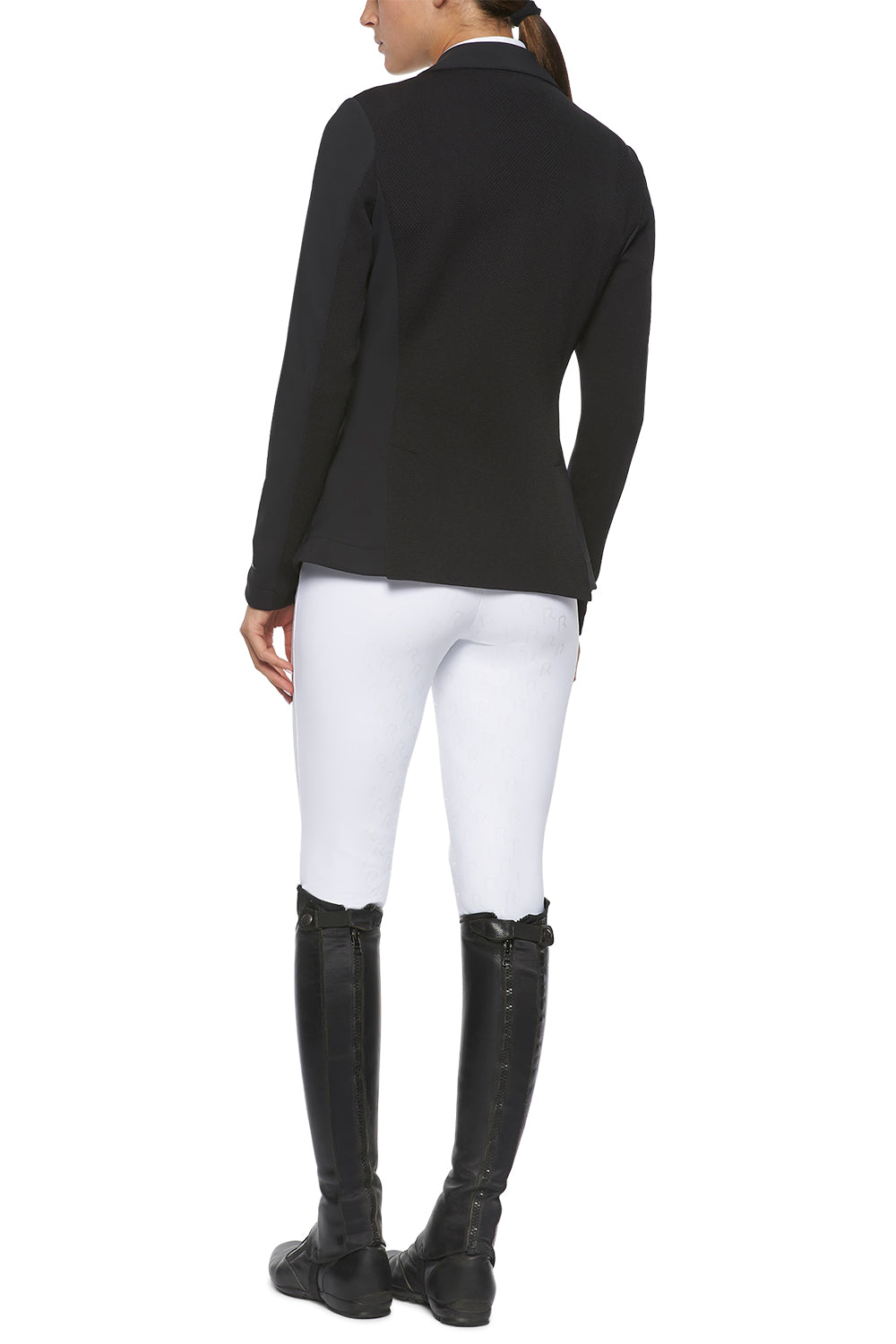 Introducing the Cavalleria Toscana Women's Light Tech Knit Zip Riding Jacket, a masterpiece from the REVOLUTION collection. This jacket combines breathable jersey with technical knit inserts, setting a new standard in equestrian apparel. The double fabric construction, featuring Sensitive® Fabrics and 3D knits, creates a garment that exudes elegance and offers unparalleled comfort.