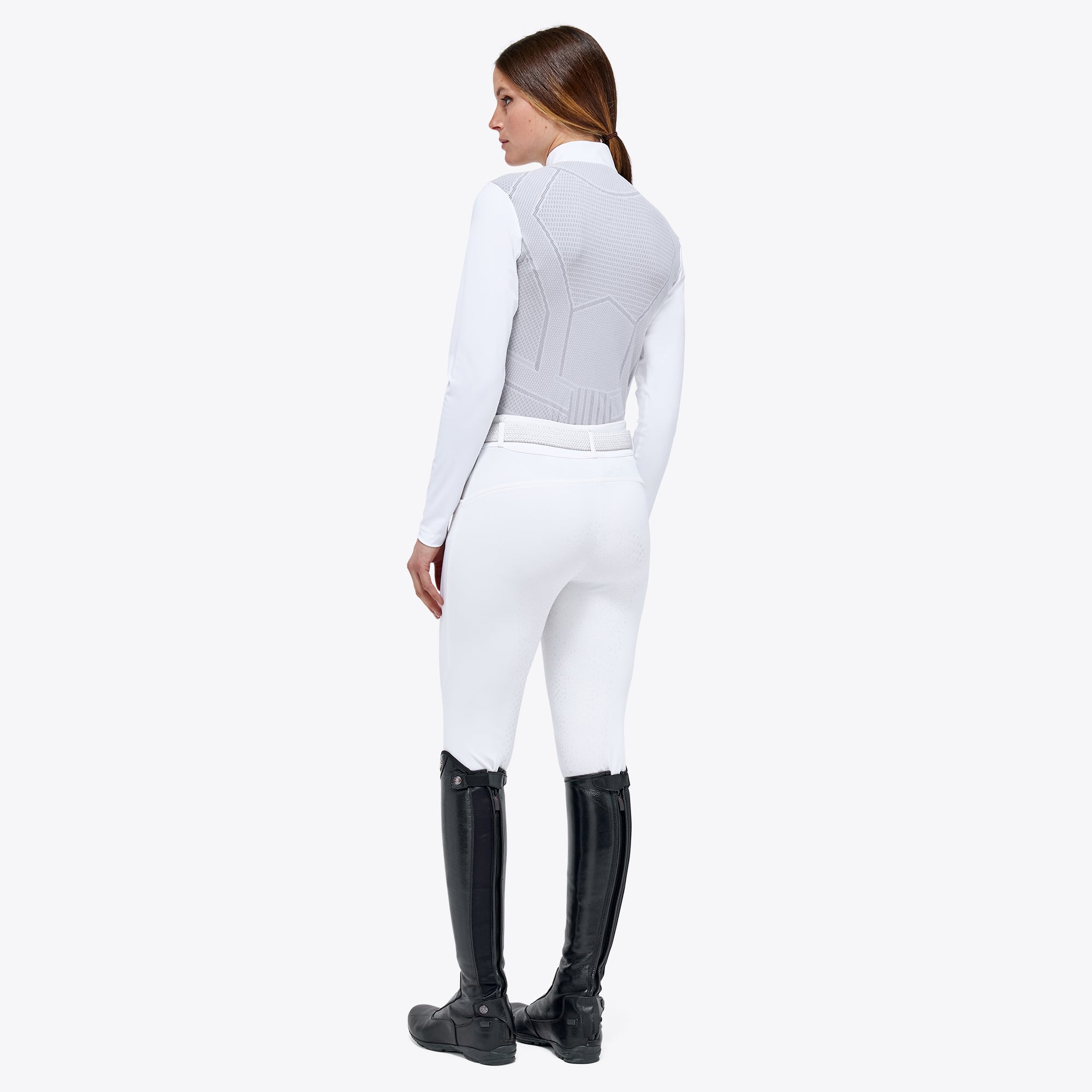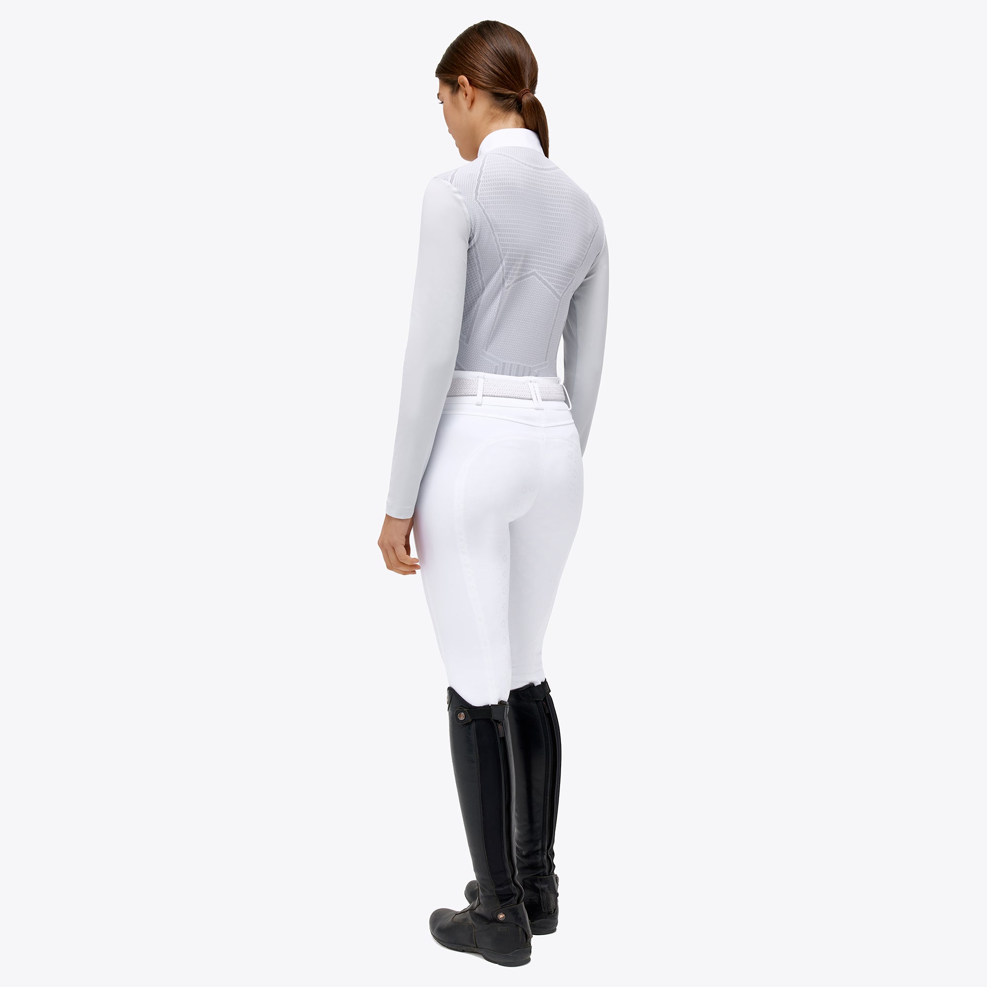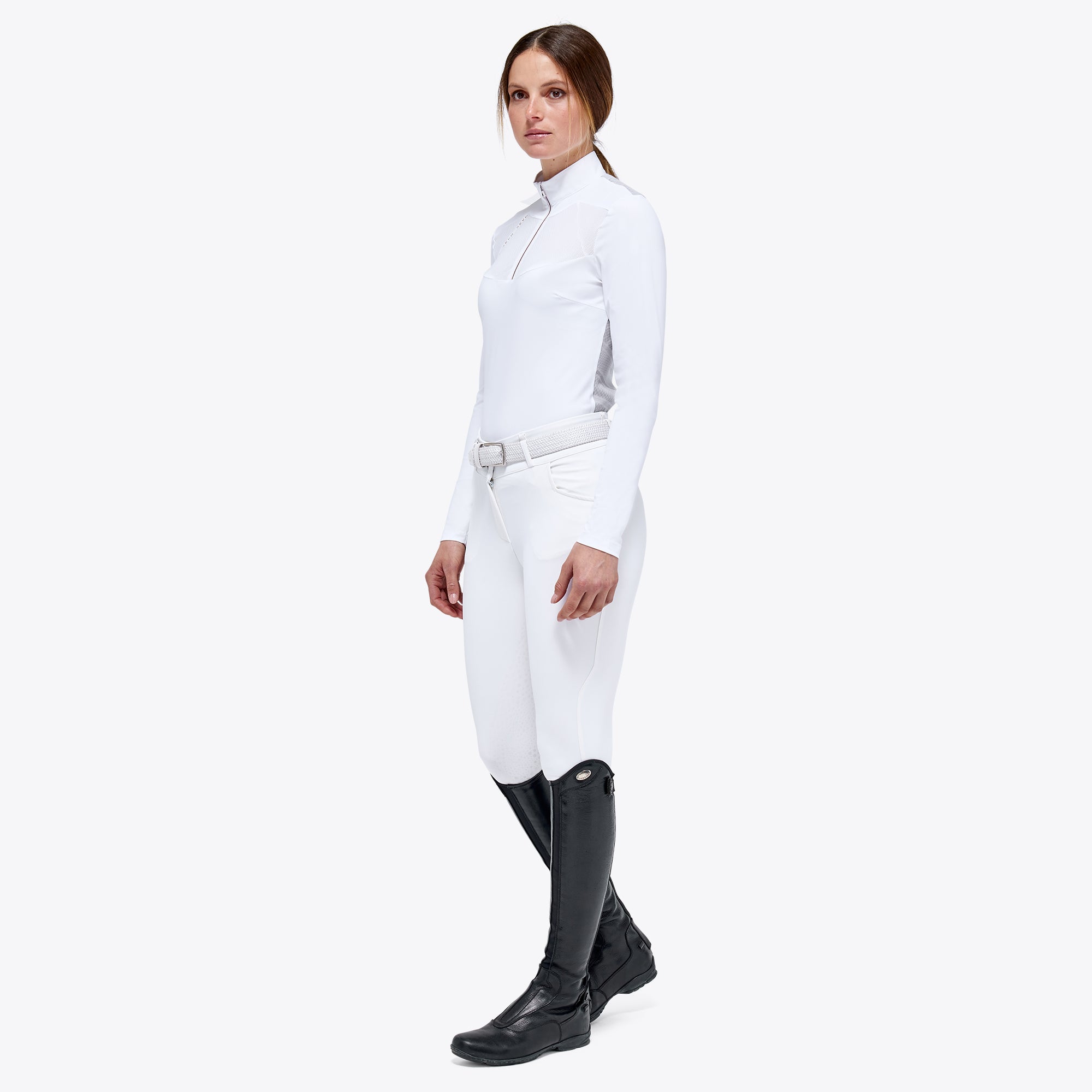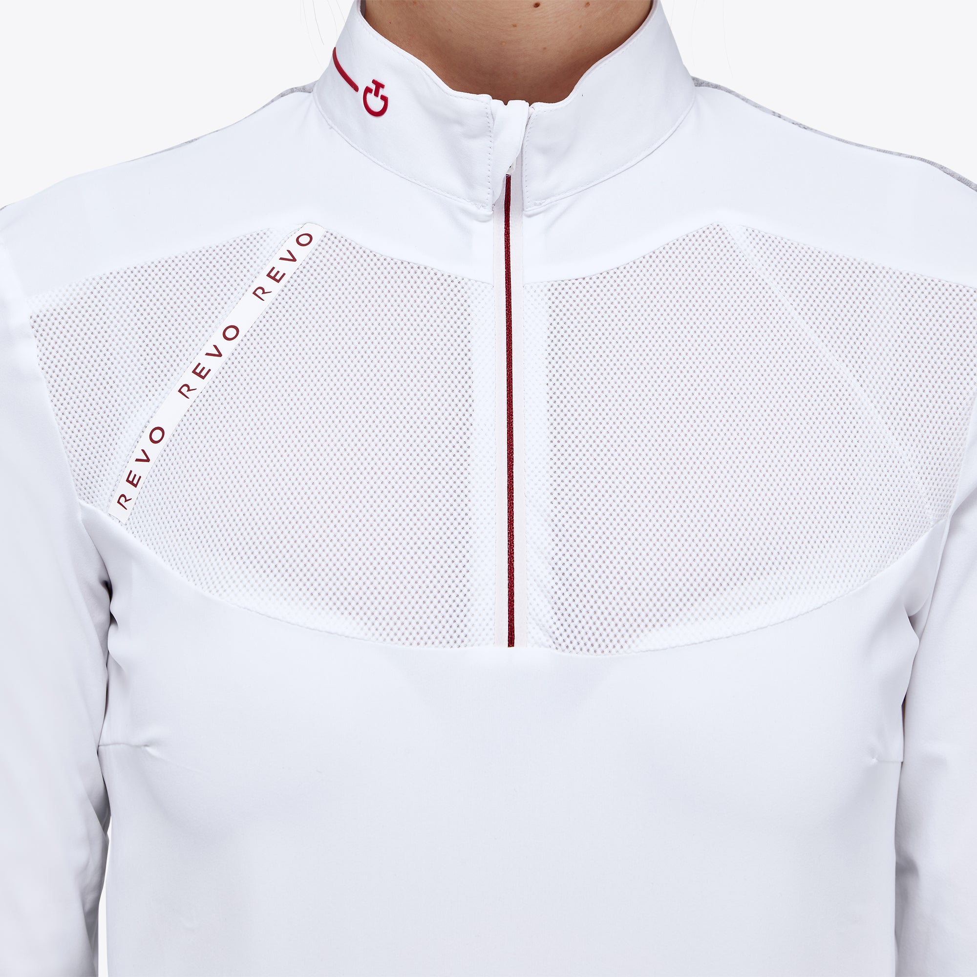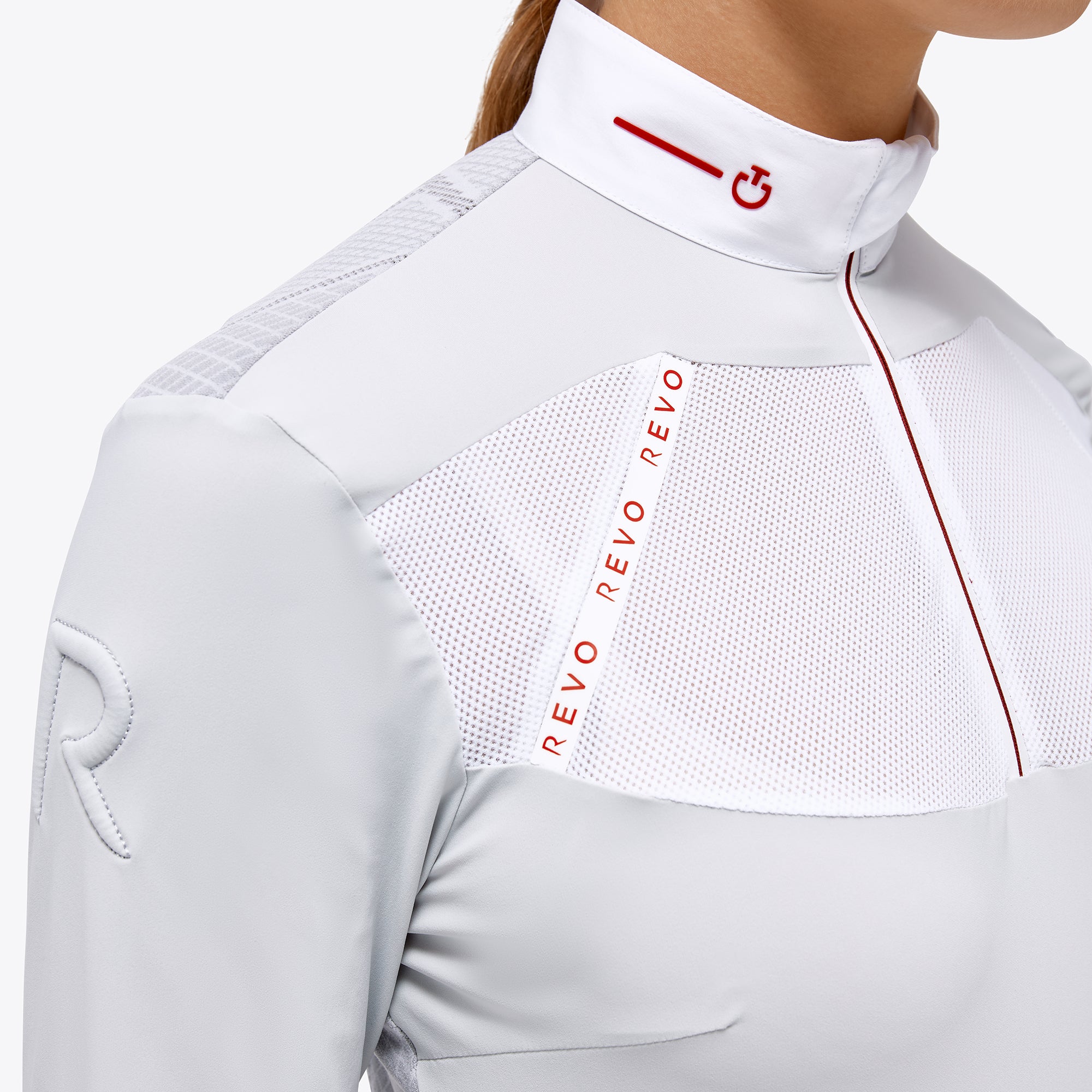 Long-sleeve show shirt in REVO performance knit with high collar and CT embroidery.