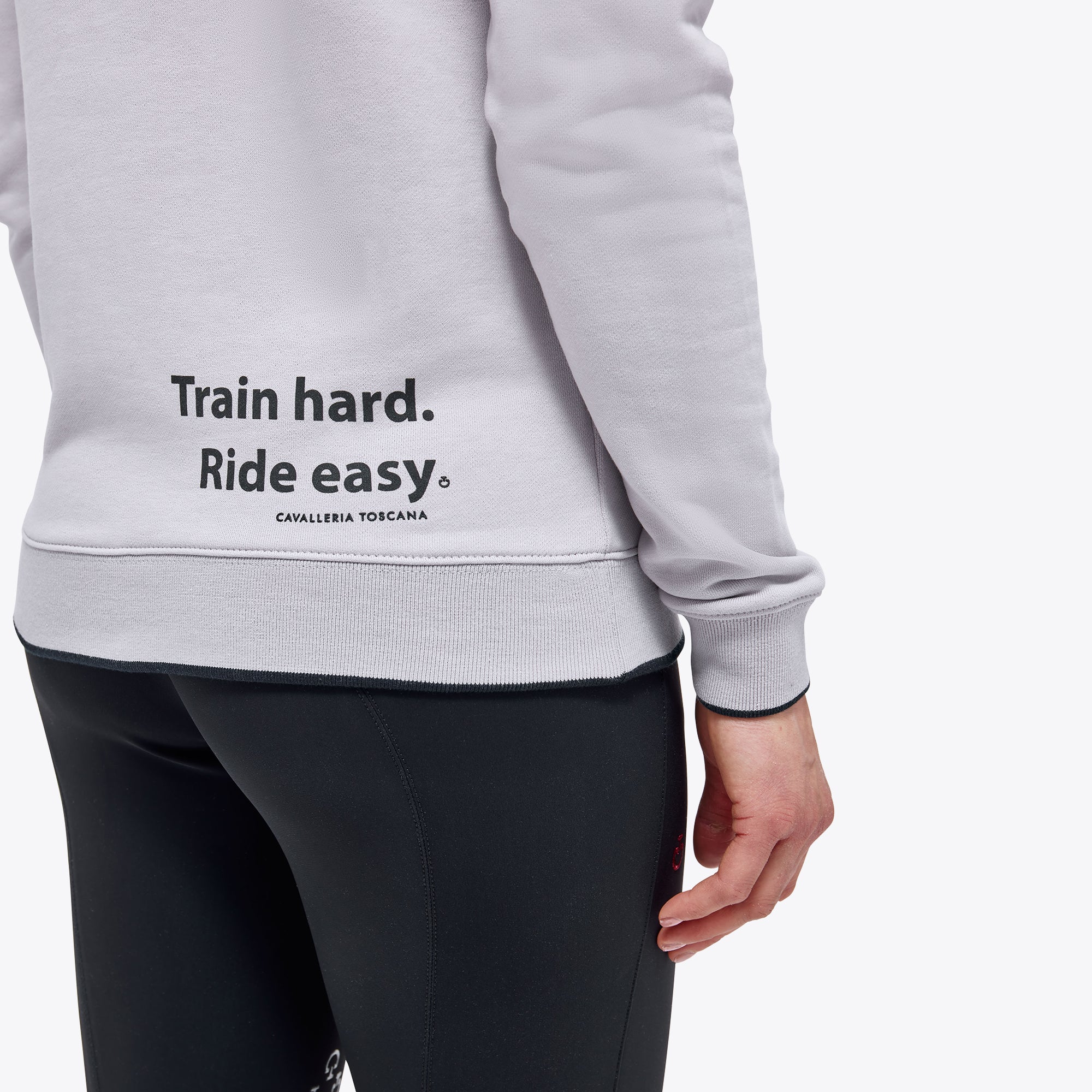 Elevate your workout experience with the Women's "Train Hard. Ride Easy" sweatshirt. Crafted from soft, breathable cotton, this sweatshirt ensures maximum comfort during summer workouts and warm-ups. Embrace the feeling of soft fabric against your skin, providing the ideal balance of coziness and breathability.