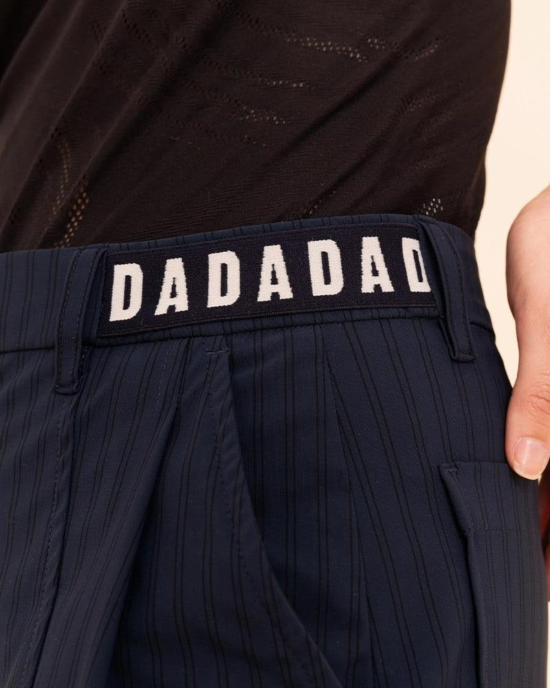 Its loose cut, its two Italian pockets at the front and its two large patch pockets at the back complete the silhouette. The pants close with one tab with an invisible hook. A Dada Sport branded elastic and five thin belt loops complete the piece.