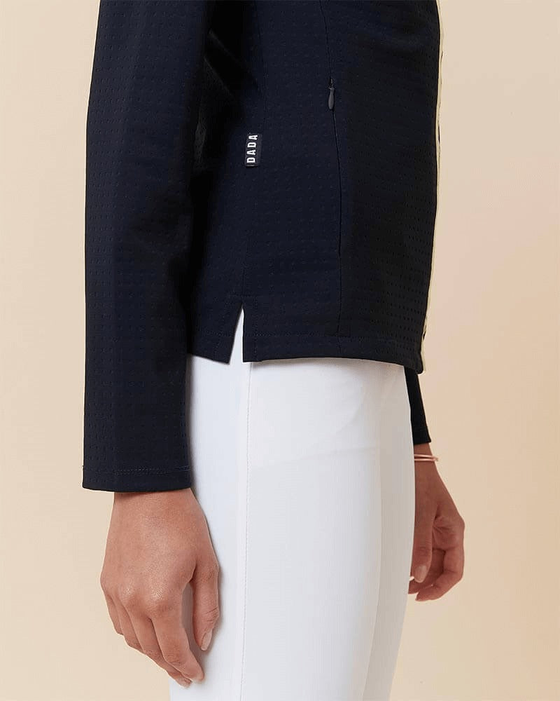 DADA details: DADA logo below the neck in the back, small navy DADA label on the right side.