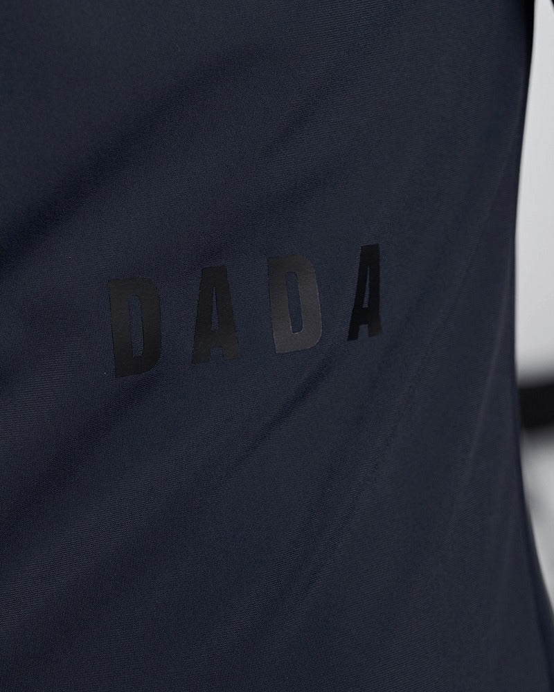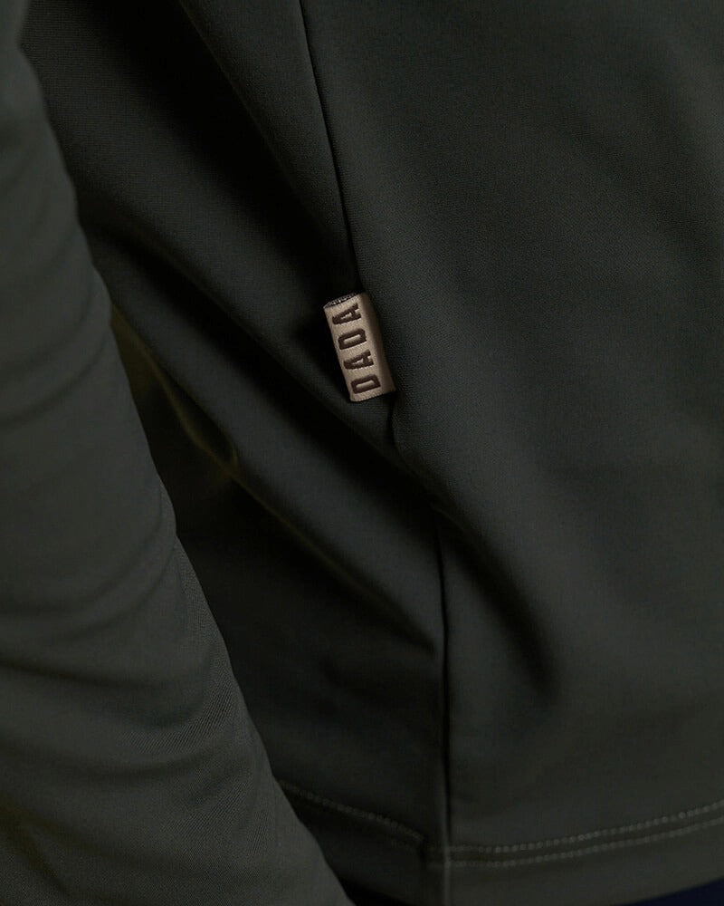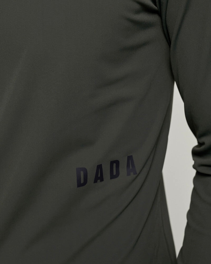 This piece is identified by its round neck, straight cut, and stitching on the bottom of the collar, on the cuffs, and on the bottom of the garment. The subtle placement of the Dada Sport logo transfer on the left waist and on the bottom left sleeve completes this piece.