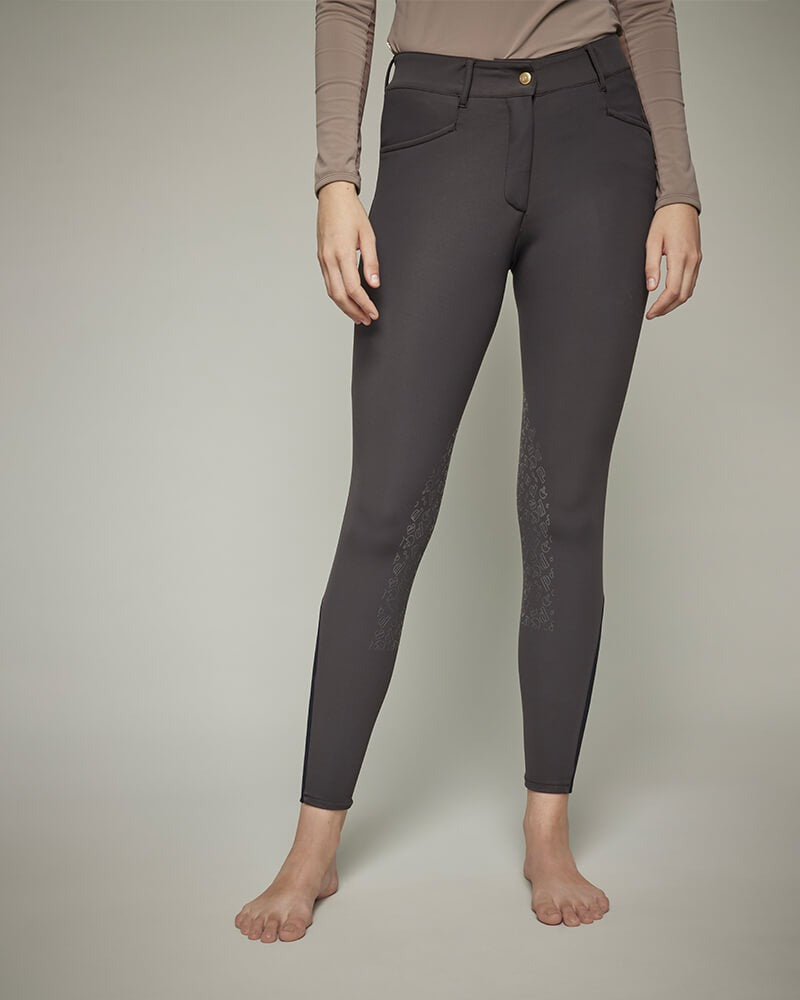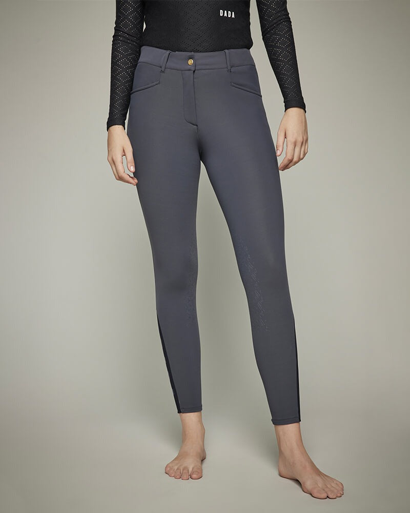 Immerse yourself in the innovation of Dada Sport's microfiber riding pants. Meticulously designed, these pants offer not only a sleek appearance but also functional features for equestrian enthusiasts. The silicone grip, inspired by iconic equestrian elements like the bomb and the bit, ensures unparalleled stability in the saddle.