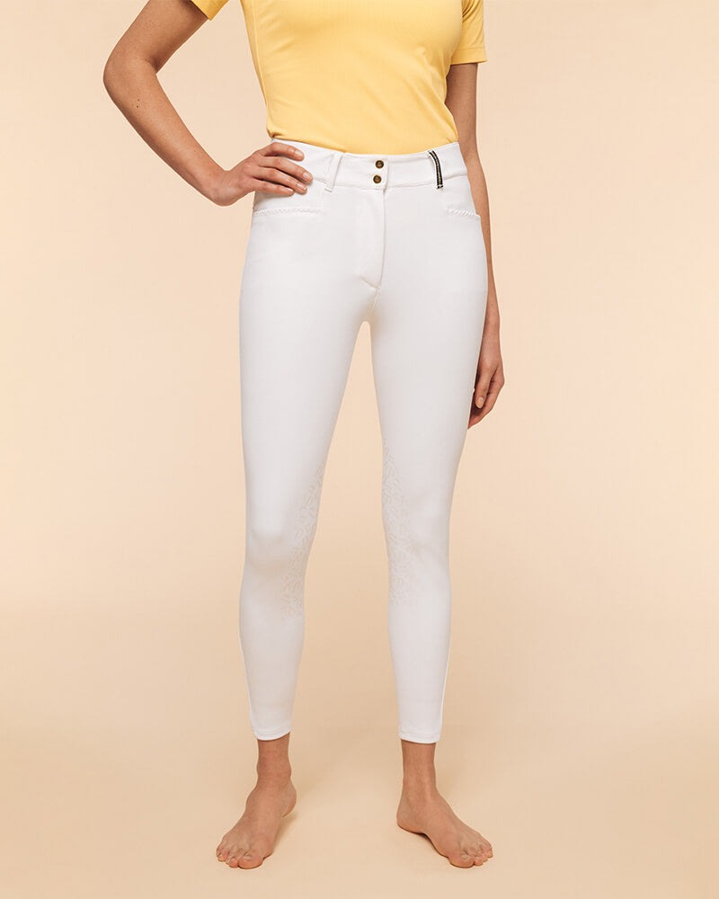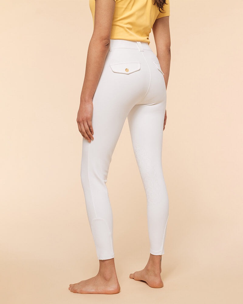 Experience a new level of stability in the saddle with Giovani Grip. Meticulously designed with a minimalistic approach, these riding pants feature transparent patches formed by the iconic Dada Sport logo on the inner knees. The Giovani Grip minimizes friction points with the saddle and stirrup leathers, offering a seamless connection and enhanced stability during your rides.