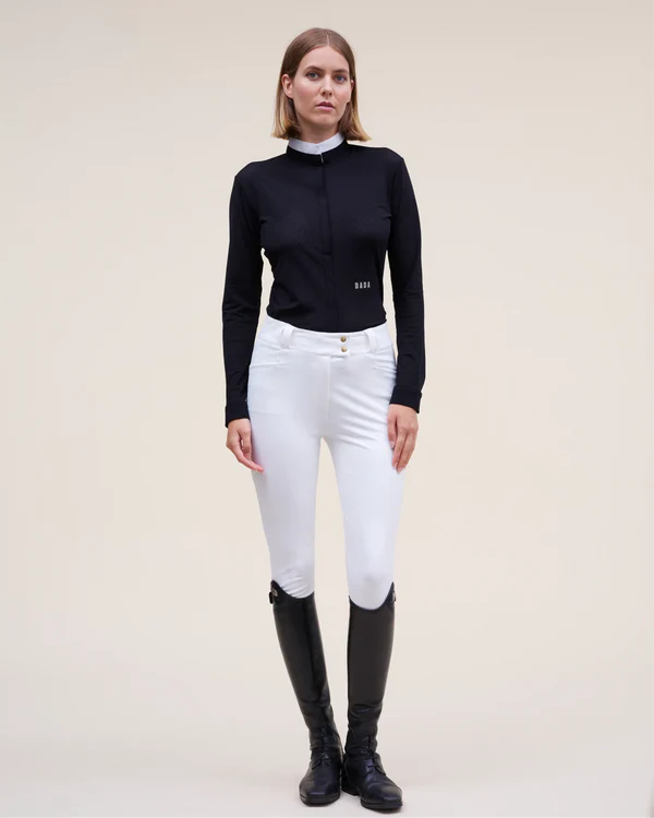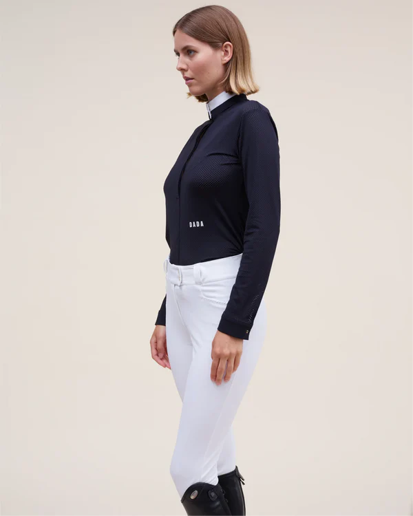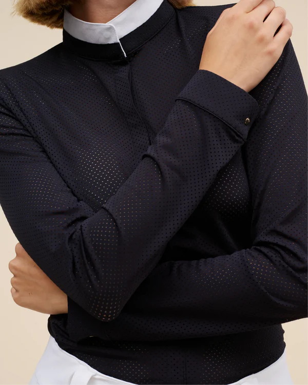 Long-sleeved micro-perforated technical polo shirt with a sleek design.