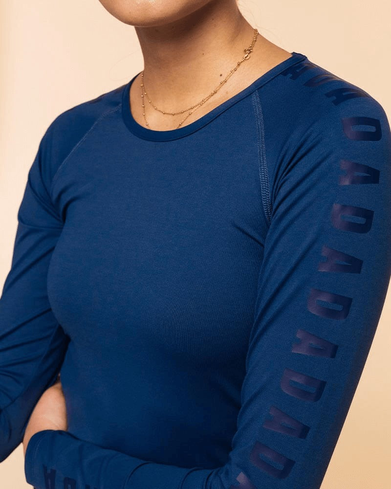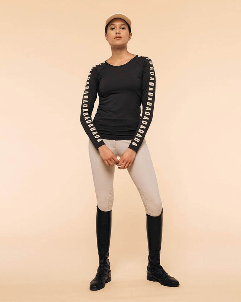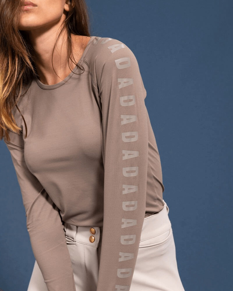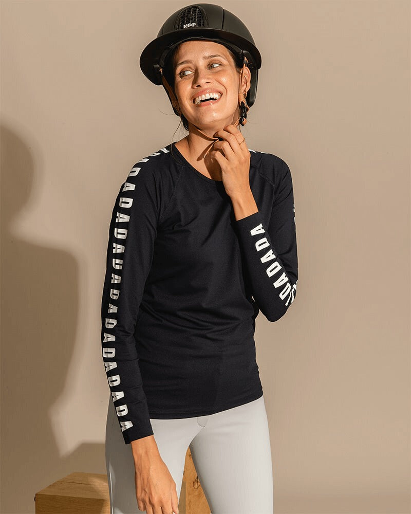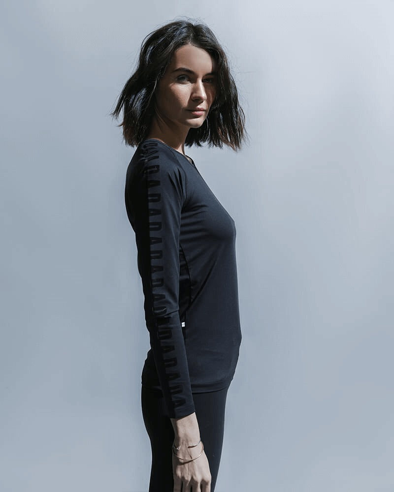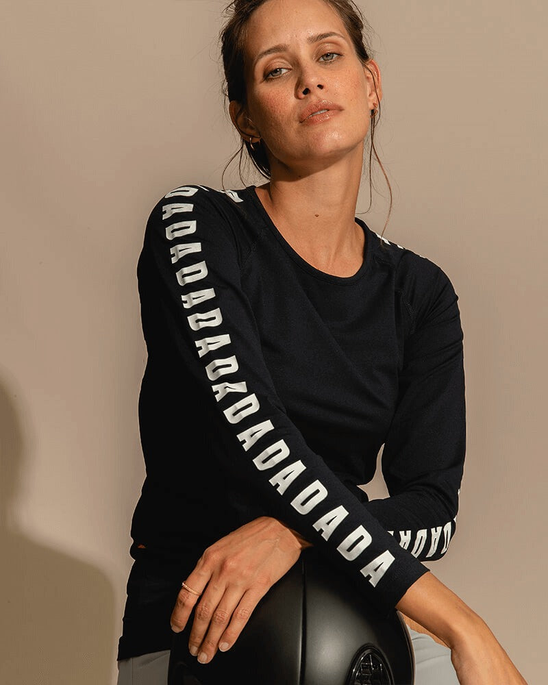 We designed this stretchy, breathable, and lightweight technical long-sleeve shirt to offer maximum comfort and protection. It's the perfect piece to keep the body supported. Its anti-UV technology protects it from the sun, it is also resistant to chlorine and sun oils. This piece is unique because of its tight fit and the repetition of the letters DADA all along the sleeves.