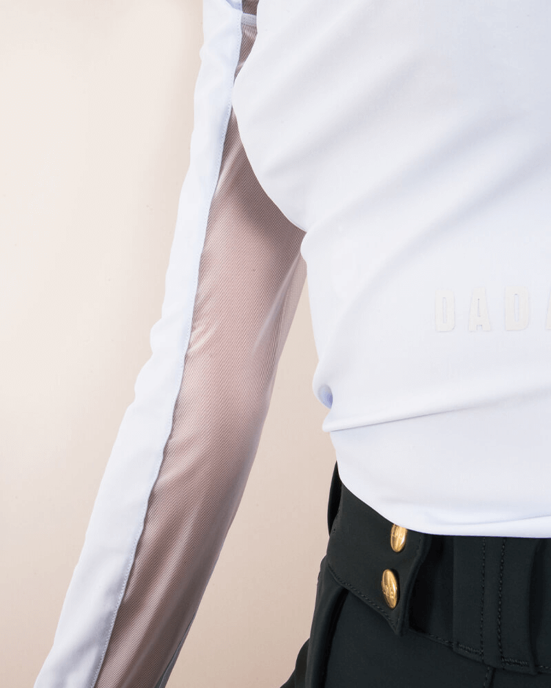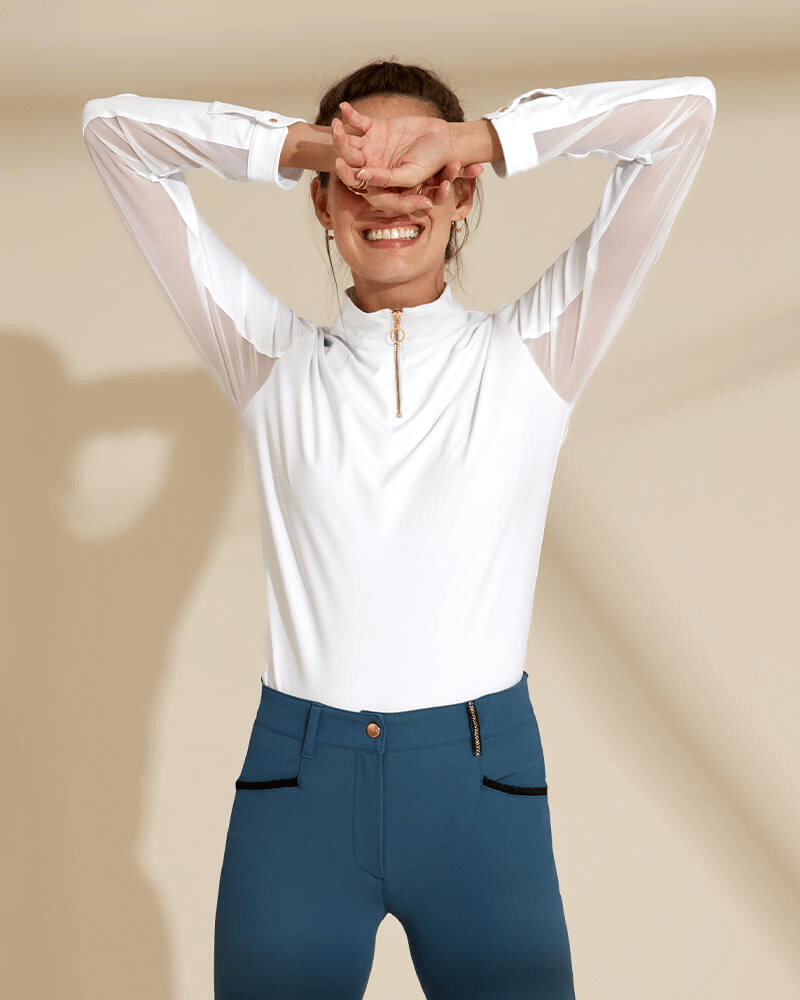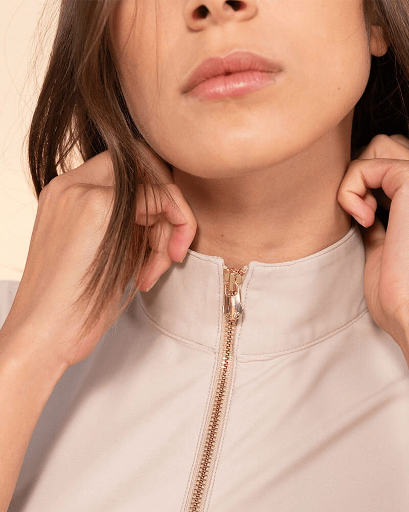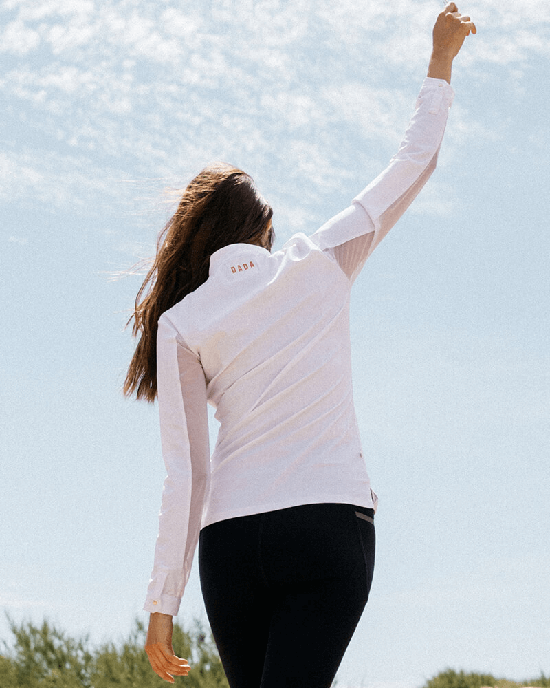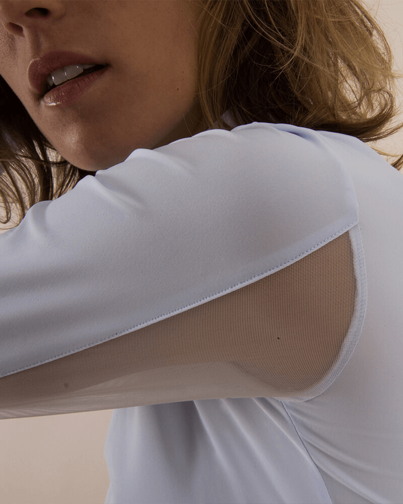 This material made in Italy has many technical advantages, such as muscle support, UV protection (UPF 50+), excellent breathability, good abrasion resistance and easy care. An antibacterial treatment has also been carried out on the fabric during its manufacture and helps to limit the appearance of unpleasant odours.