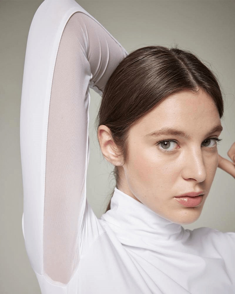 For those seeking both comfort and breathability in a long-sleeve shirt, the Visconti is a revelation. Its slim, contoured fit creates an ultra-feminine silhouette. The funnel neck and long sleeves are fashioned from highly breathable technical fabric, while full-length tulle inserts under the arms enhance airflow. The monogrammed DADA logo graces the upper left arm, signifying authenticity. The dense fabric ensures no see-through effect, guaranteeing confidence and comfort.