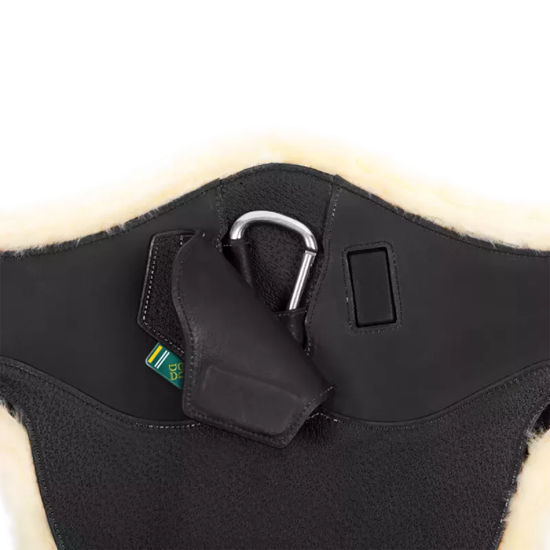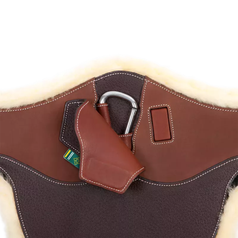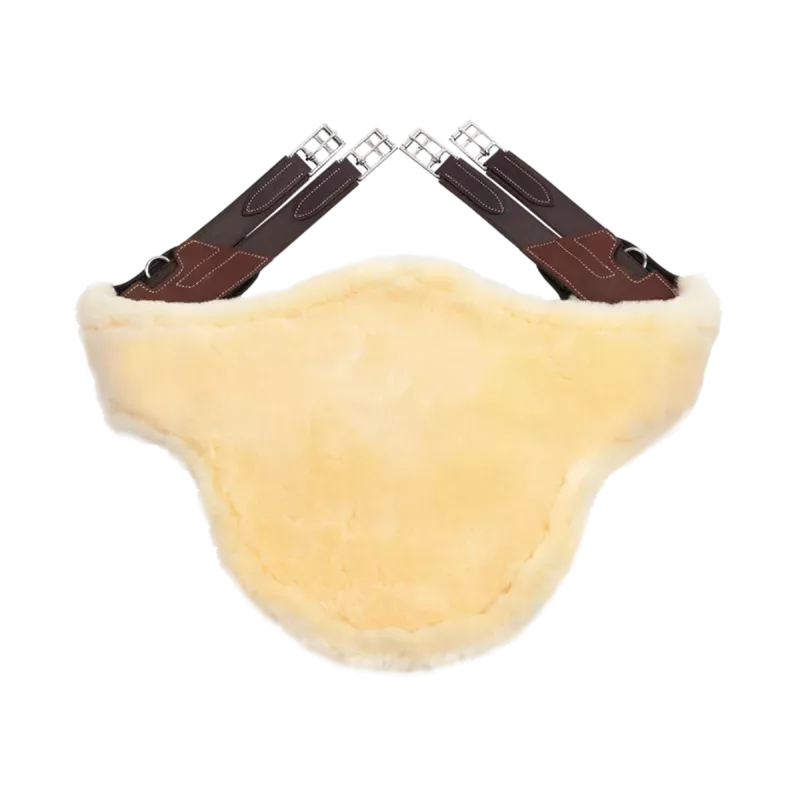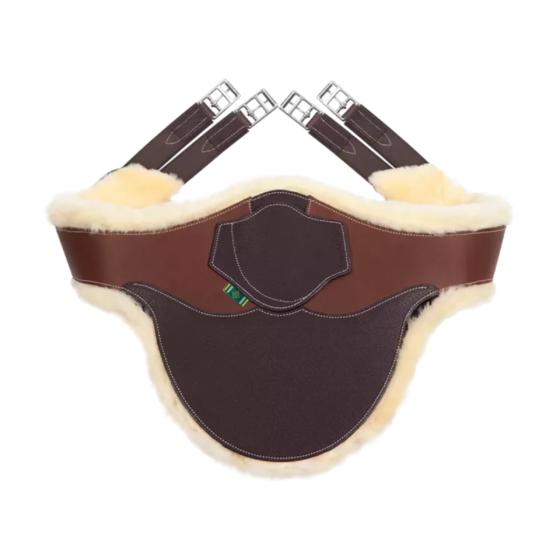 The artificial sheepskin belly guard girth is slightly curved to perfectly match the morphology of the horse’s rib cage. The central part is made of grained leather, giving effective protection against damage from studs. Its artificial sheepskin lining is recommended for horses with fragile skin, prone to chaffing injuries. The lateral fastenings and central snap hook allow collars and reins to be fitted quickly.