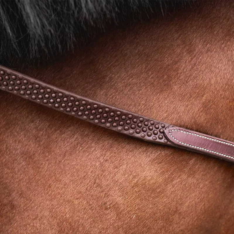 Biothane reins provide a very supple and comfortable grip thanks to the absence of leather inside the rubber, which has been replaced by Biothane. This high-strength material is lighter, finer and more supple. Comfort is optimized and safety reinforced thanks to the buckle fasteners on the bit.