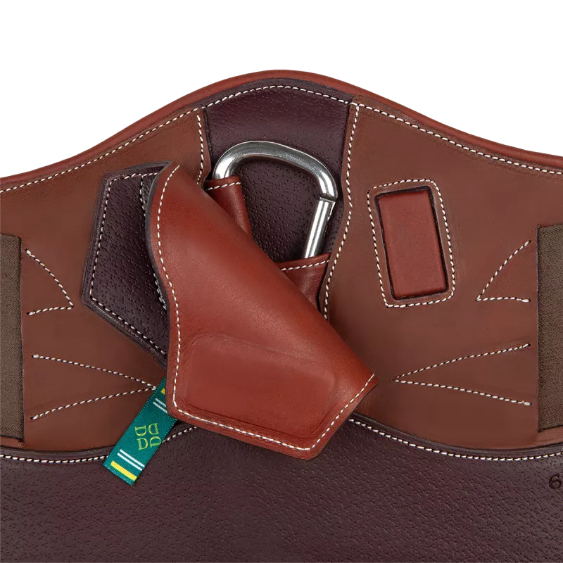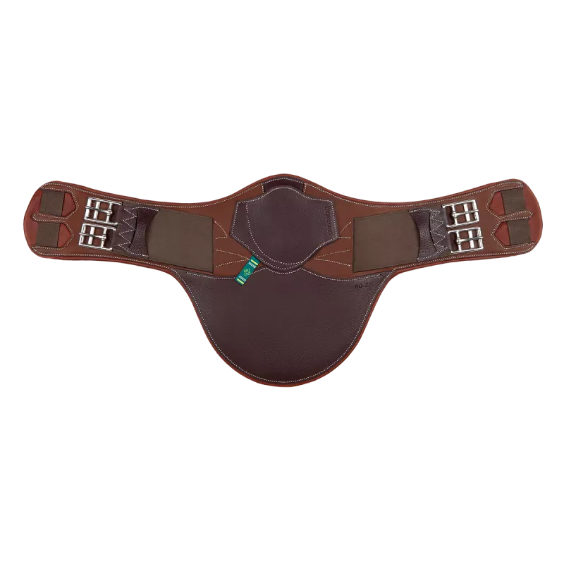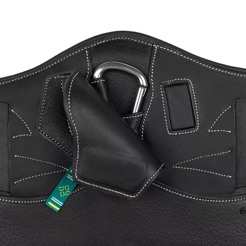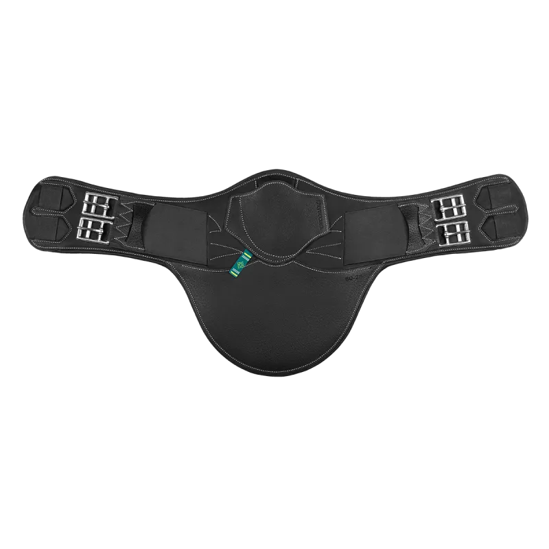 The Chiberta belly guard girth features an anatomical bib that leaves the horse's elbows free, for saddles with long girthing. The central part is made out of grained leather, providing effective protection. It is lined with thick foam level with the sternum for maximum comfort. The central snap hook allow collars and reins to be fitted easily.
